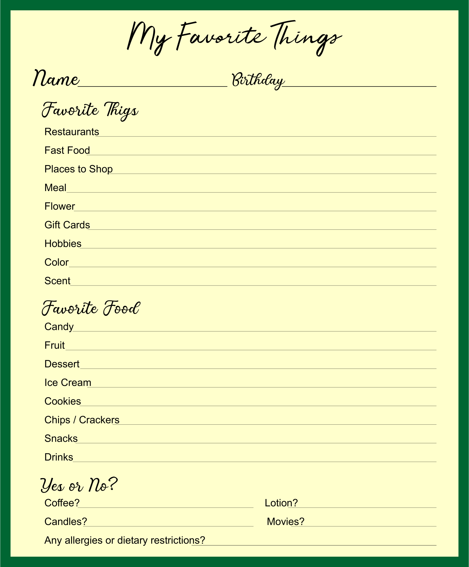 My Favorite Things Printable Printable Design Resources