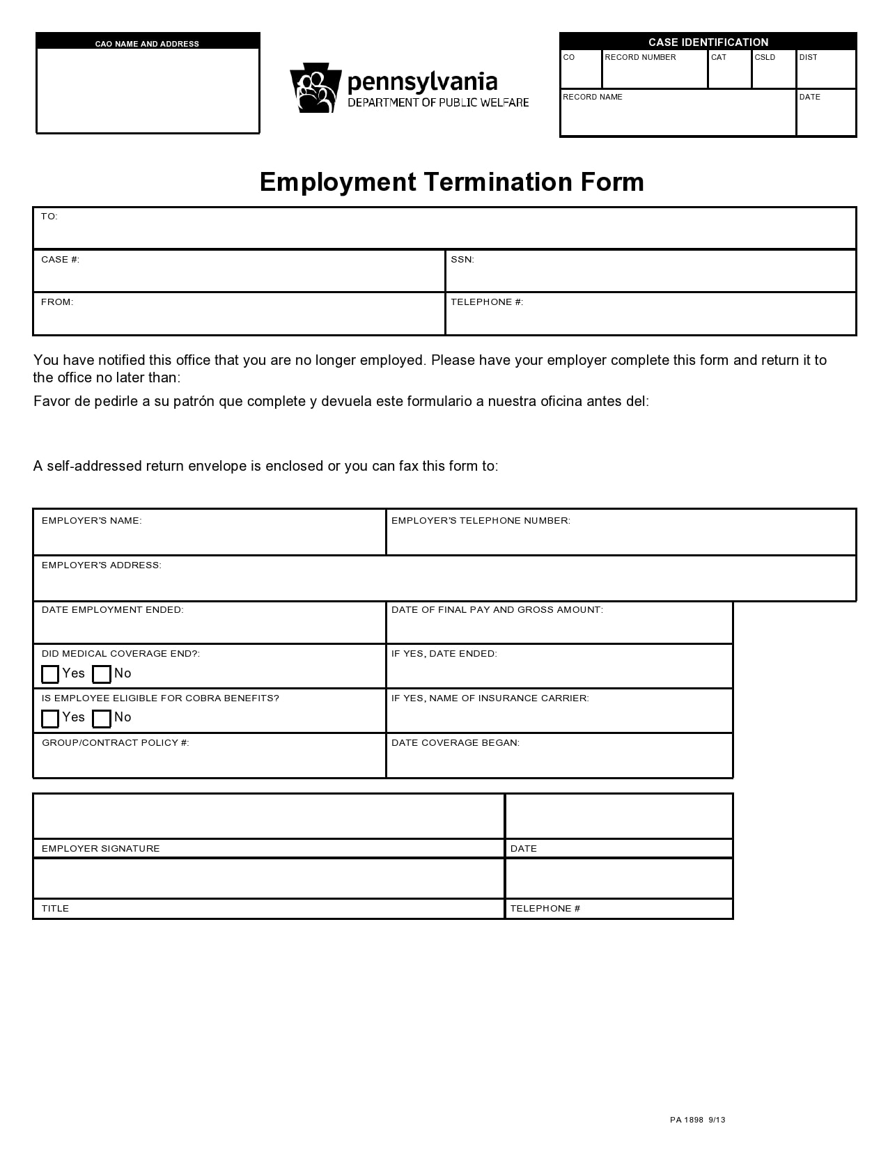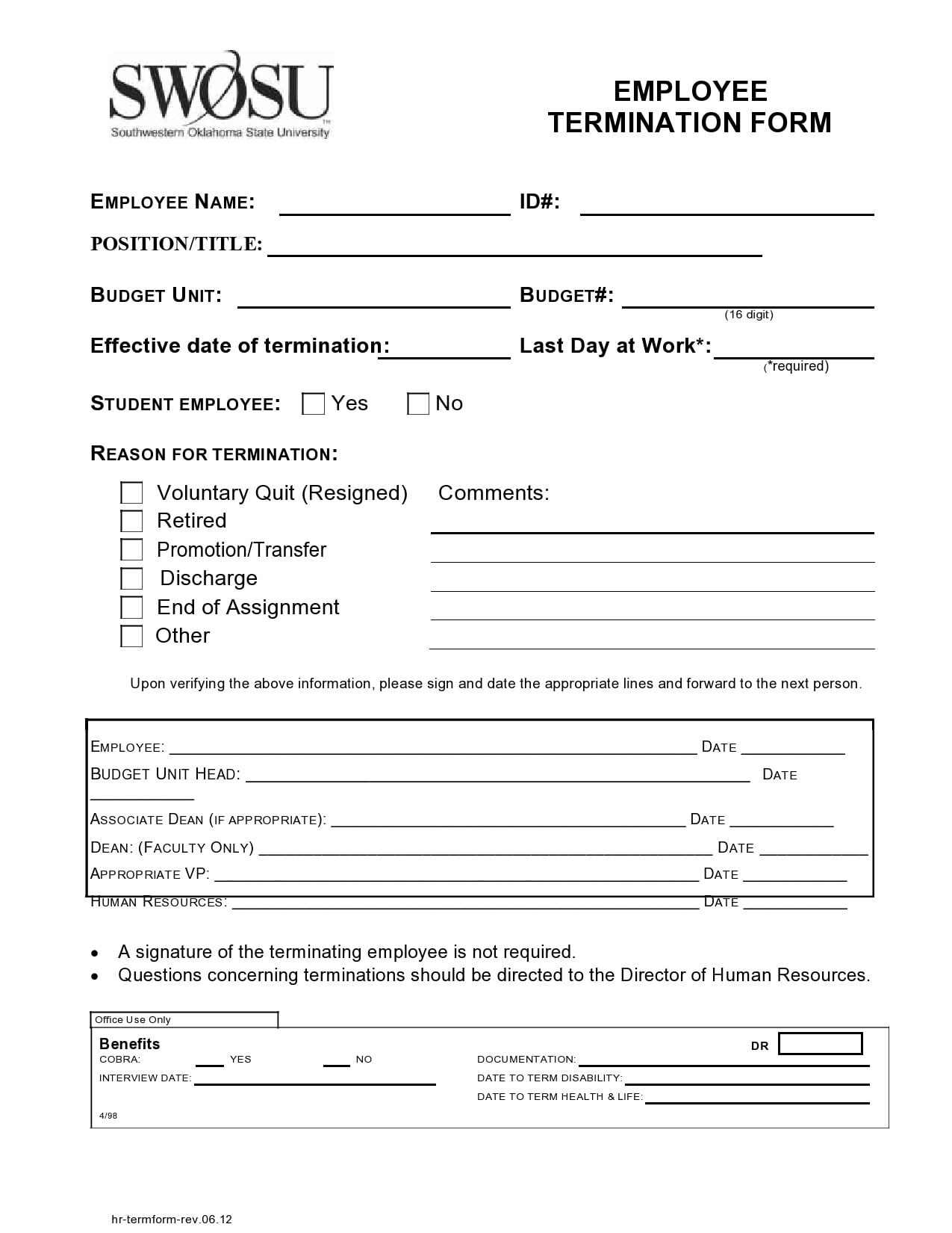 Free Printable Employee Termination Form