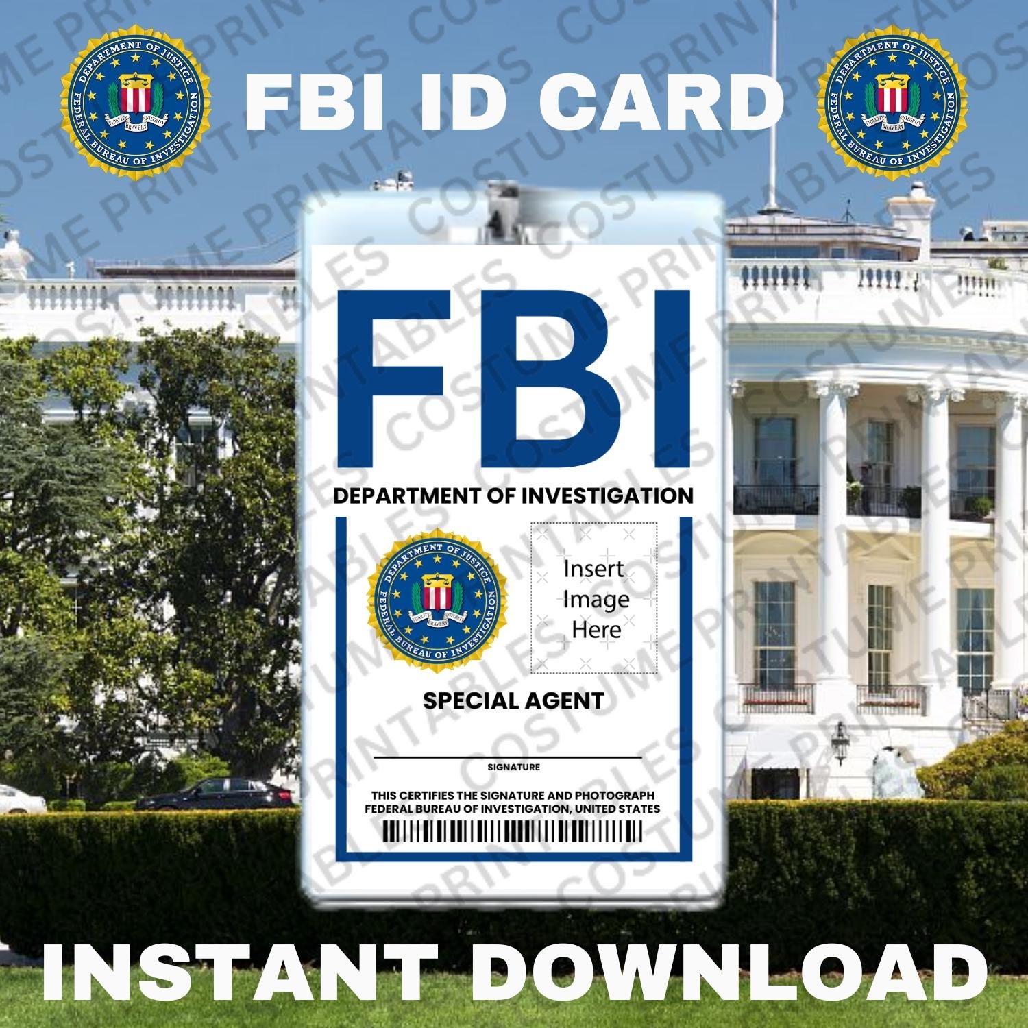 Printable FBI ID Card ID Badge Costume Cosplay Etsy