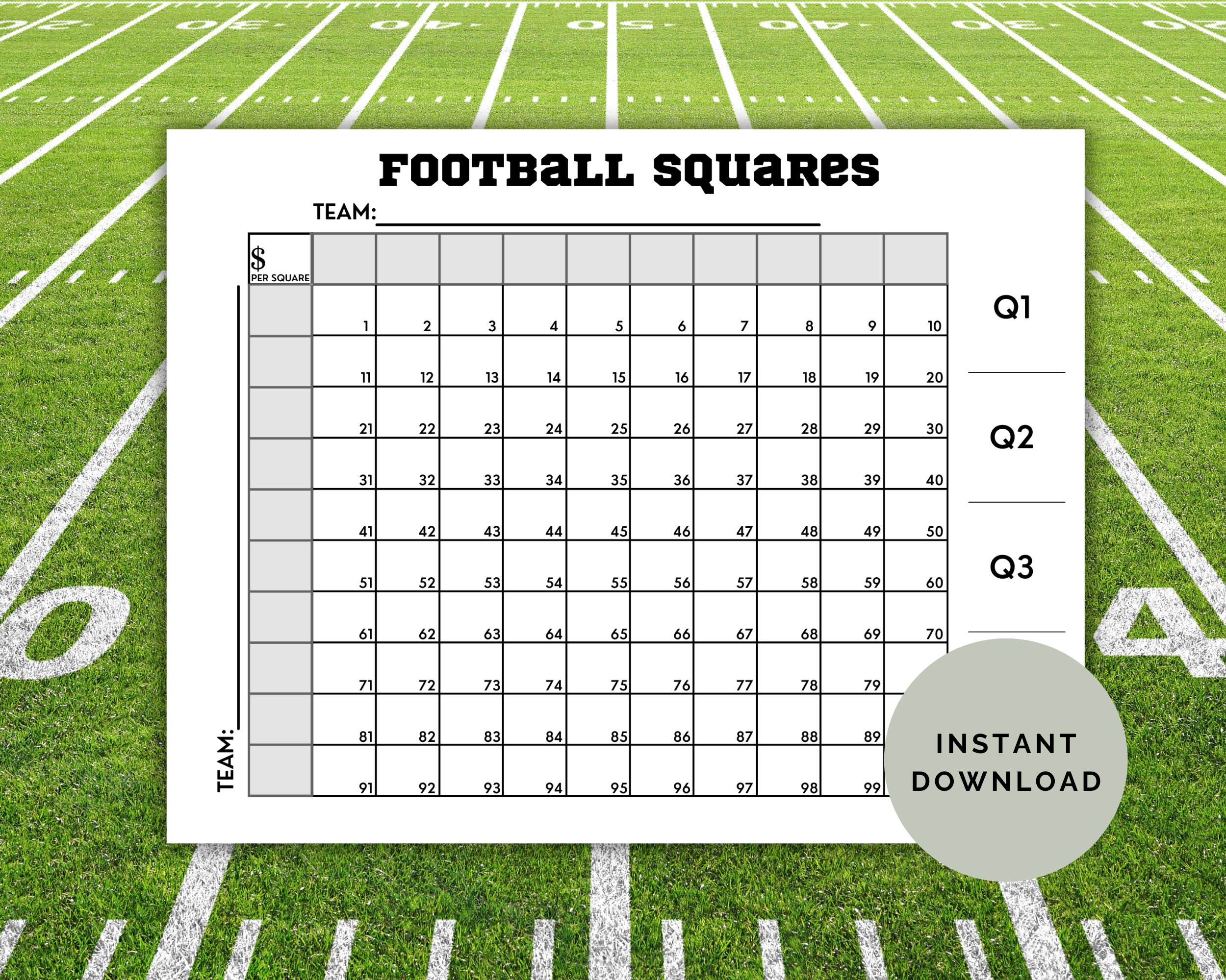 25 Football Squares Game Printable 5 5 Football Squares Instant Download