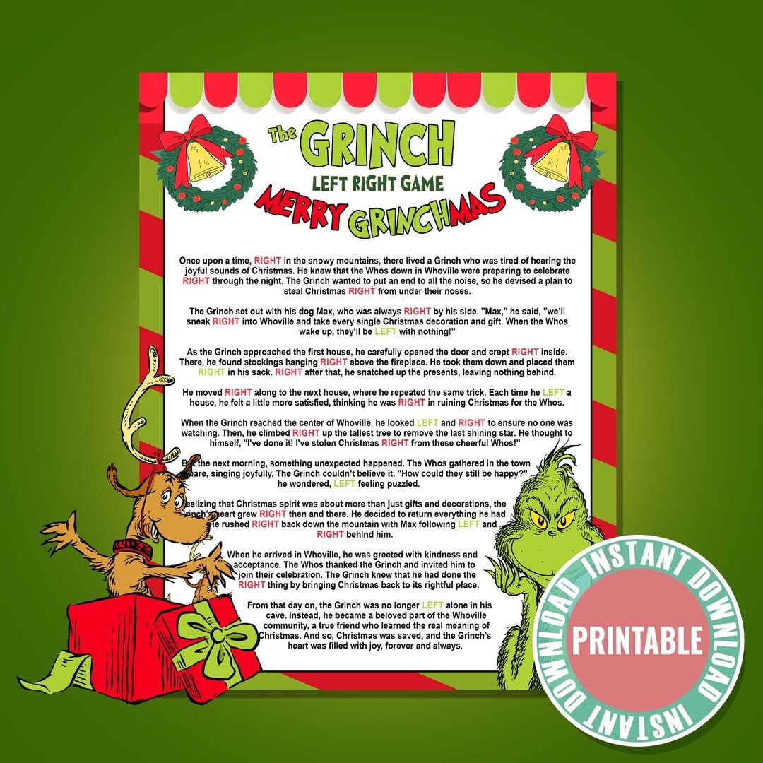 Left Right Game Grinch s Gift Exchange Adventure Christmas Left Right Game Pass The Present Party Fun For Adults Etsy
