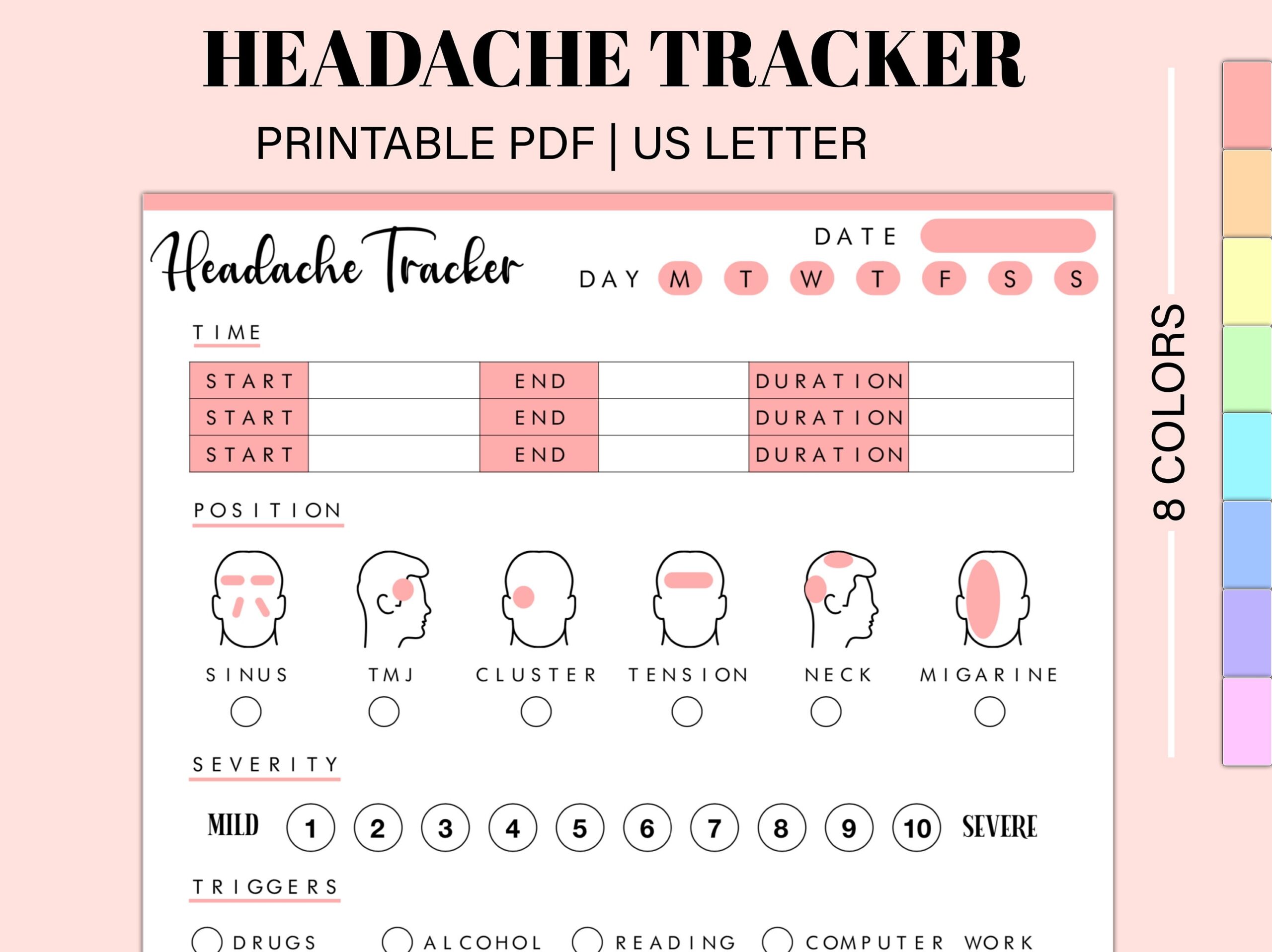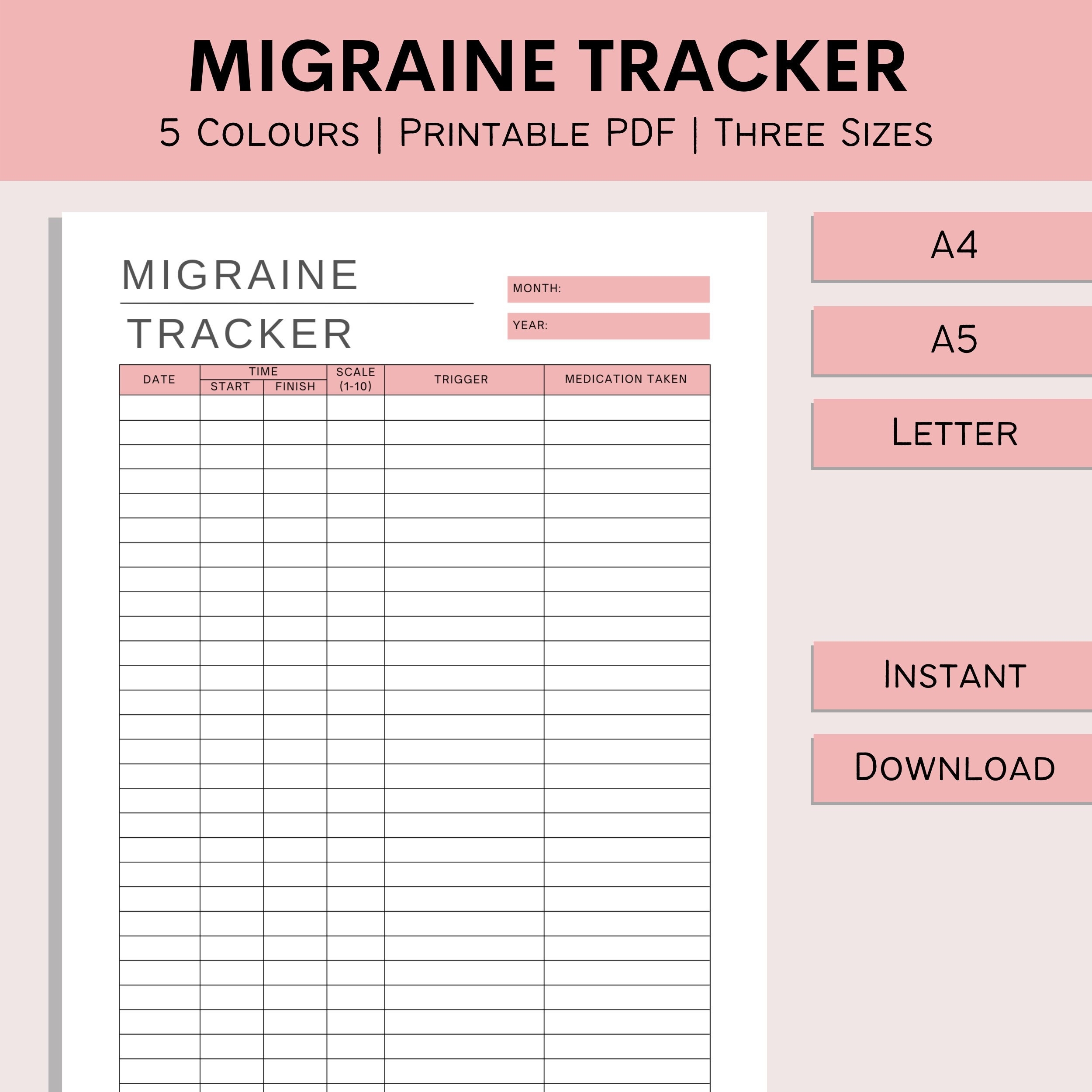 Migraine Tracker Headache Tracker Printable Headache Log Migraine Journal Pain Log Headache Trigger Monitor PDF Instant Download