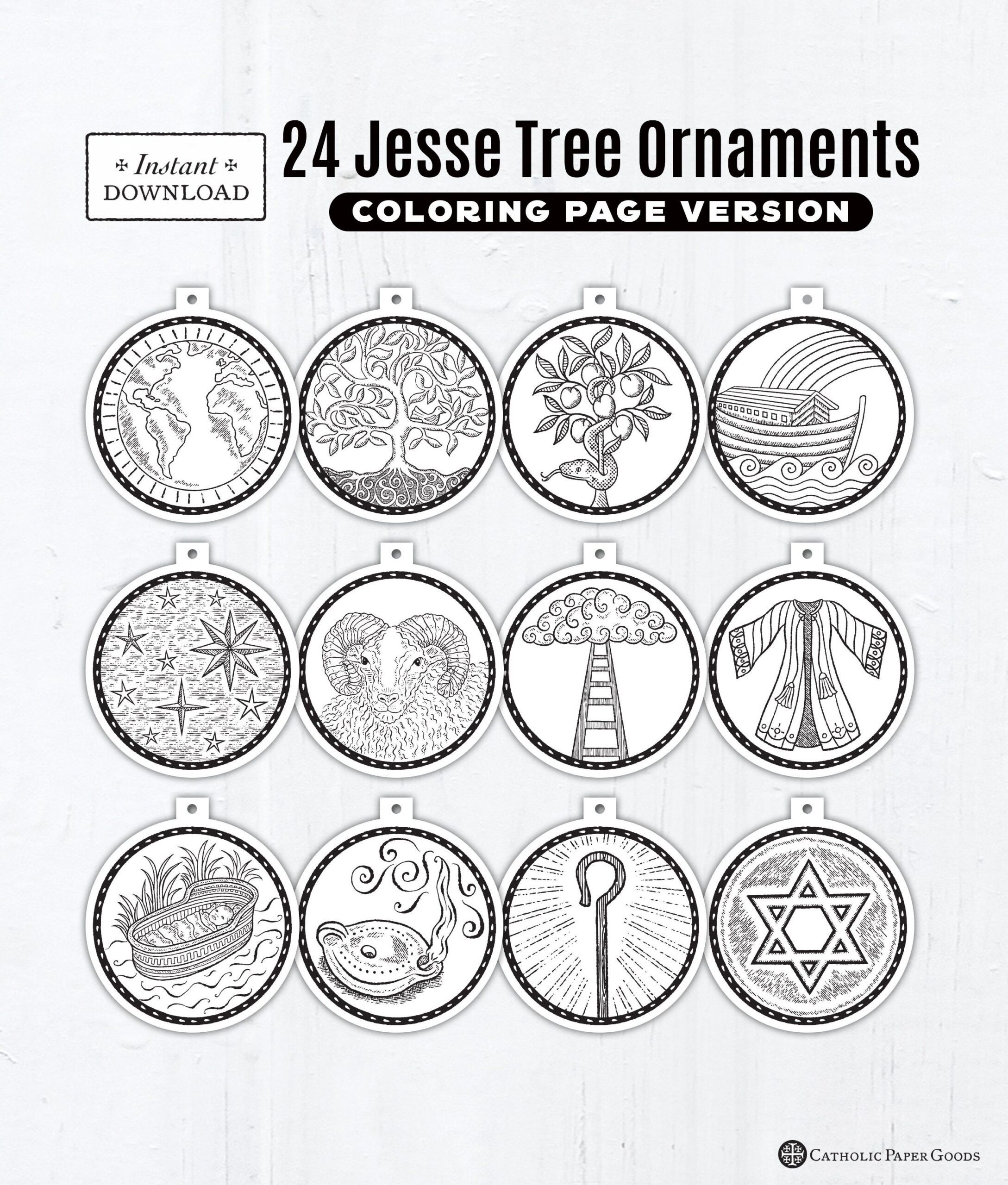 24 Jesse Tree Printable Ornaments PDF Coloring Page Ornaments Catholic Printable Ornaments Instant Download Advent Decor Jesse Tree