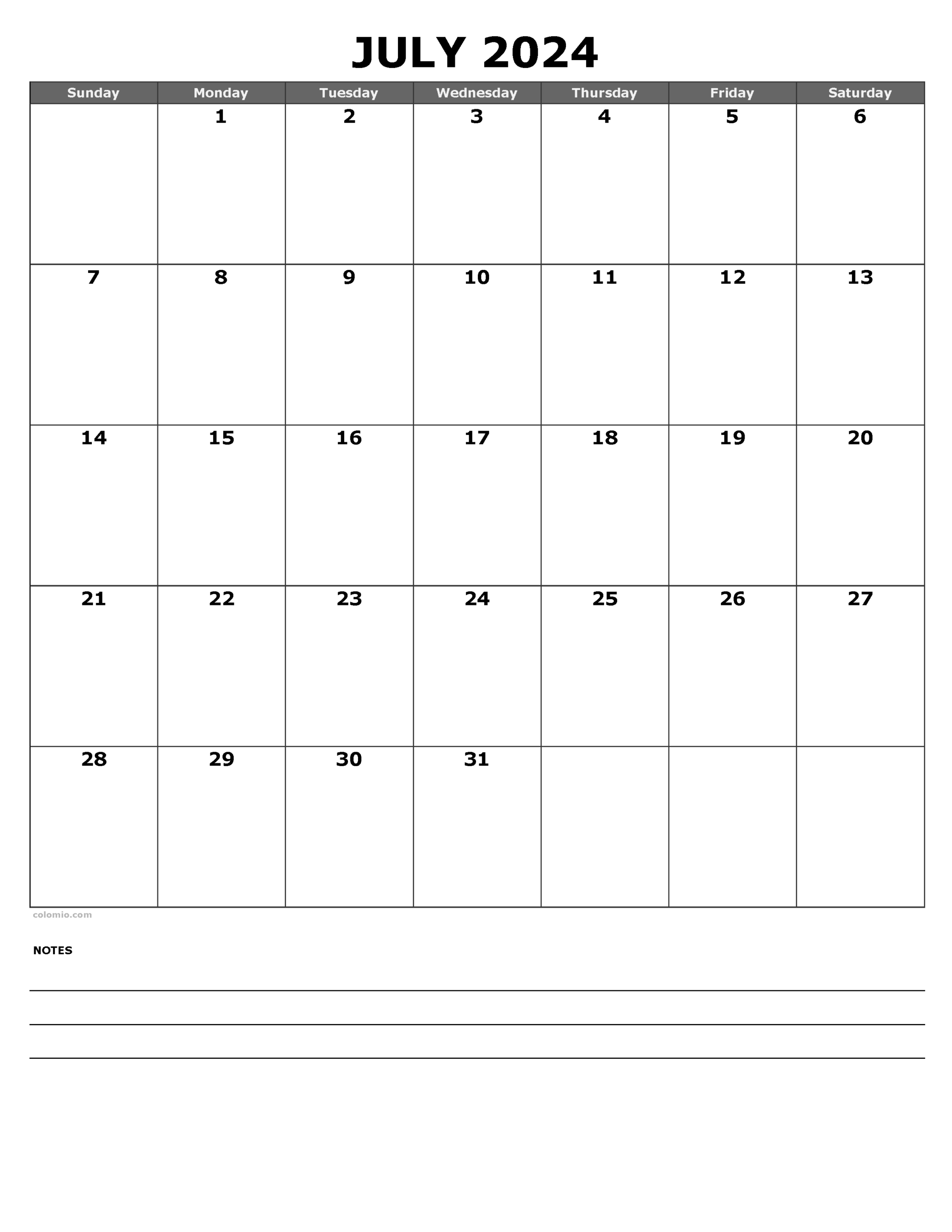 Our free printable July calendar features a clean and minimalist design, making it easy to read and write on. With plenty of space for each day of the month, you can jot down everything from appointments to birthdays to reminders.