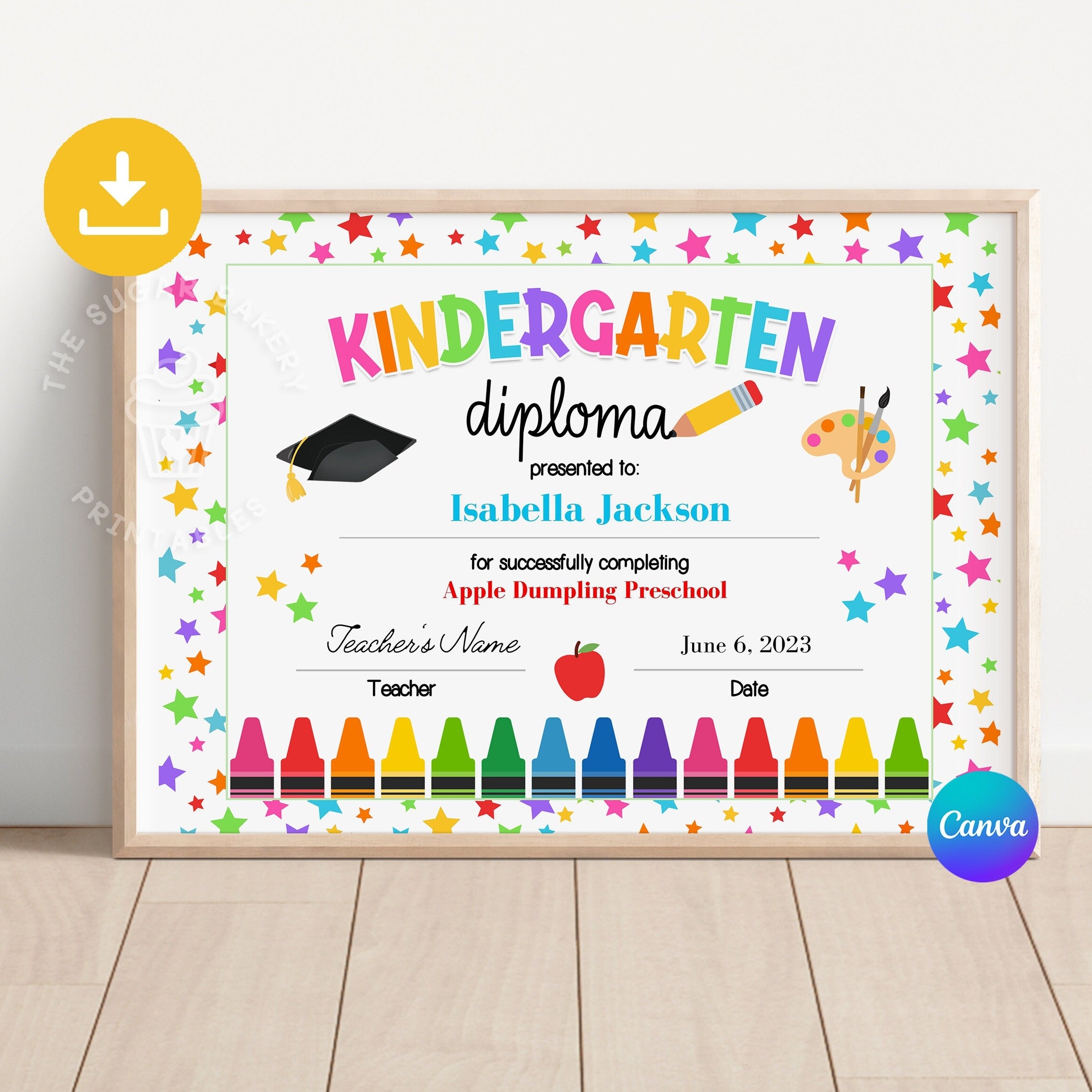 Printable Kindergarten Graduation Editable Diploma Customizable