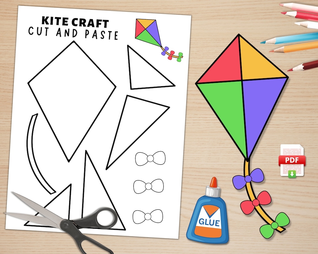 Kite Craft For Kids Spring Activities Build A Kite Cut And Paste Kite Paper Craft Printable Kite Craft Template Digital Download Etsy