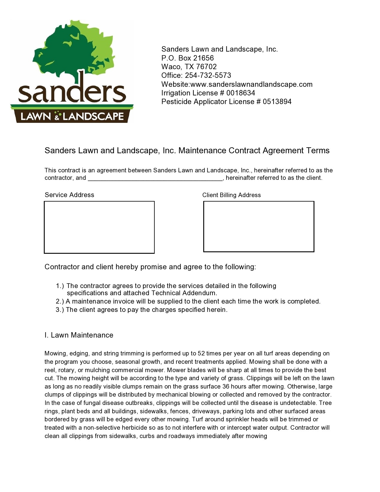Free Printable Lawn Care Contract Templates Proposal Agreement