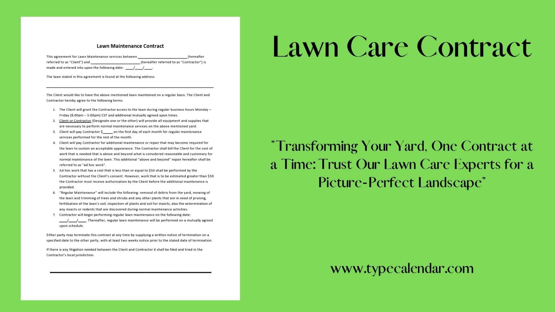 With our free printable template, you can easily outline the services you require, such as mowing, fertilizing, weeding, and pest control. You can also specify the frequency of each service and any additional instructions or preferences you may have.