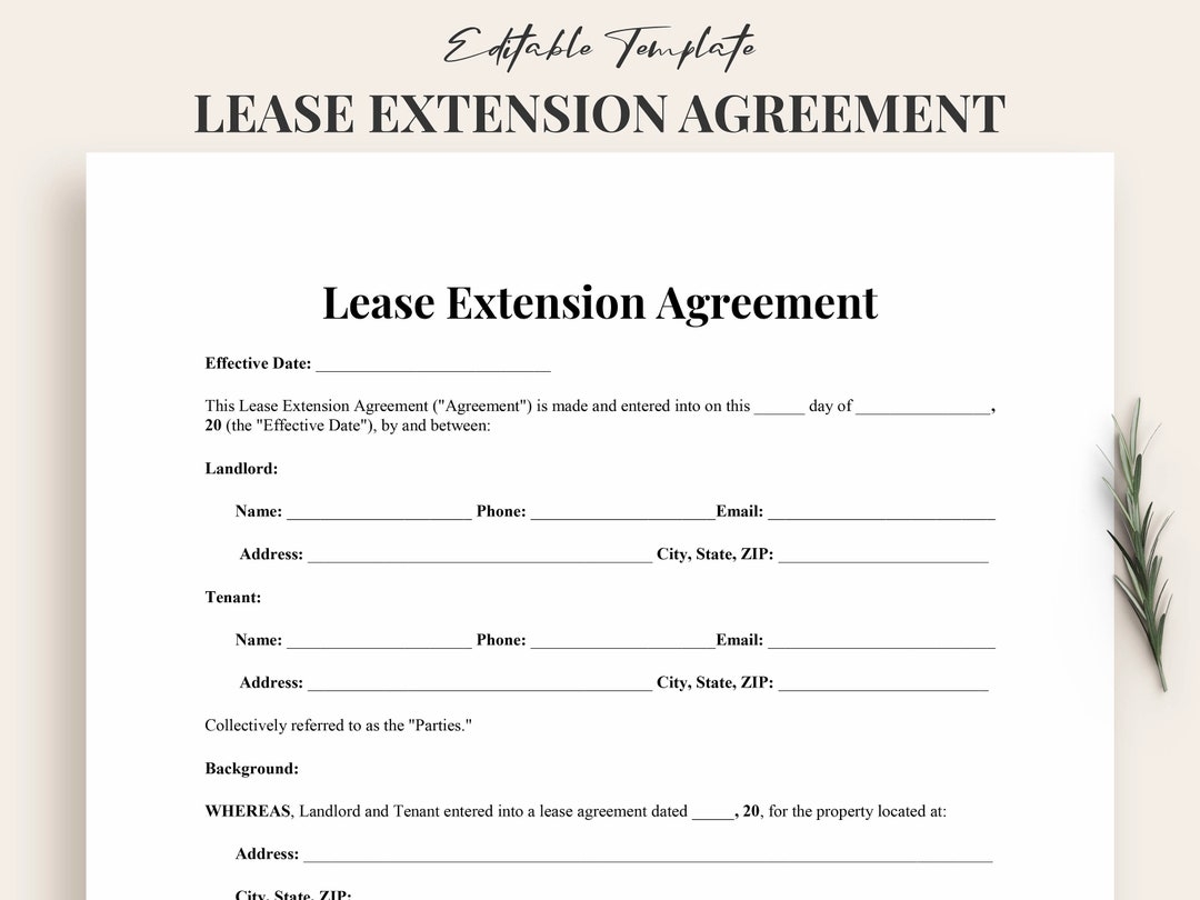 Lease Extension Agreement Template Word U0026 PDF Lease Renewal Contract Extend Lease Term Printable Form Instant Download Etsy
