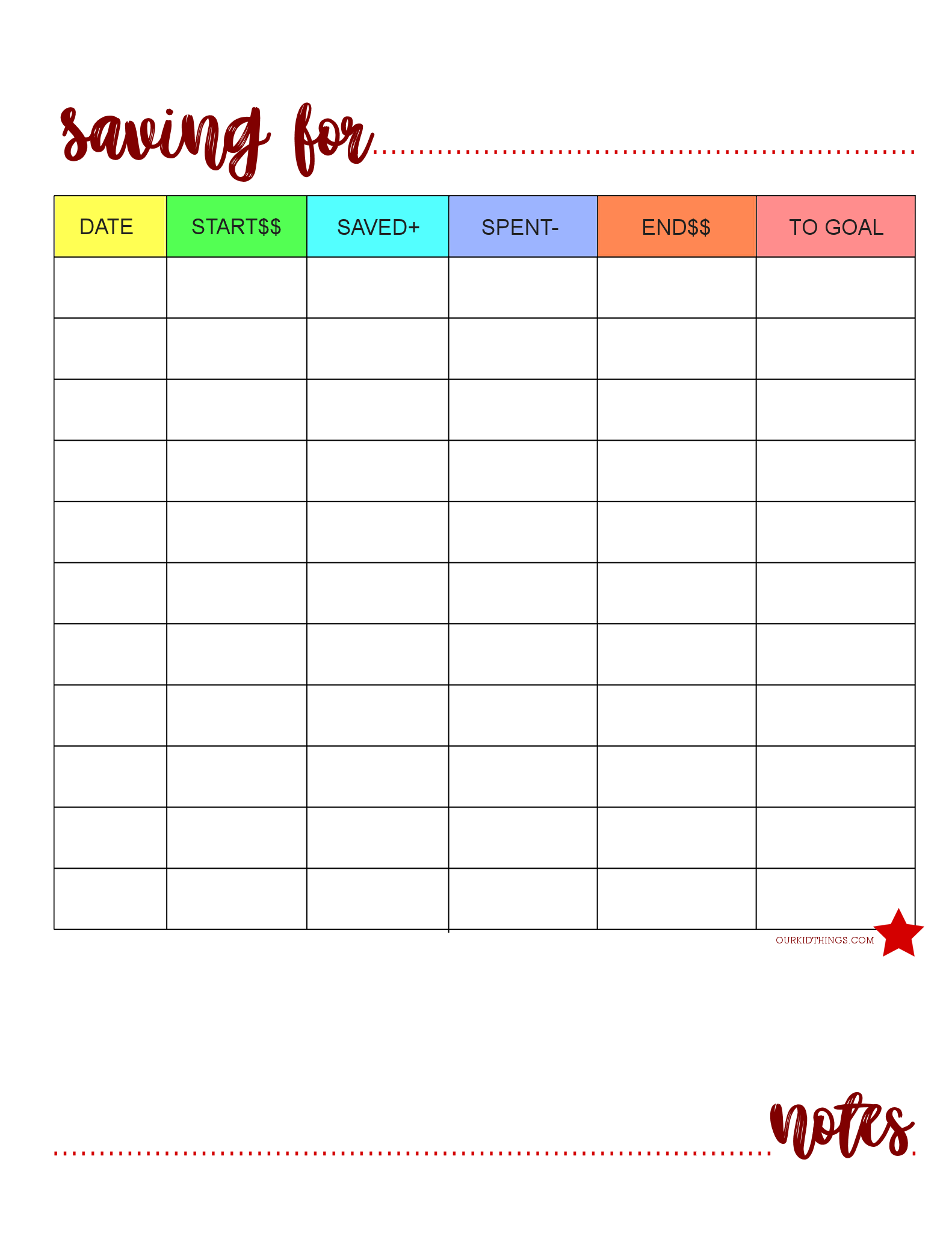 Saving For Kids Money Ledger Printable Our Kid Things