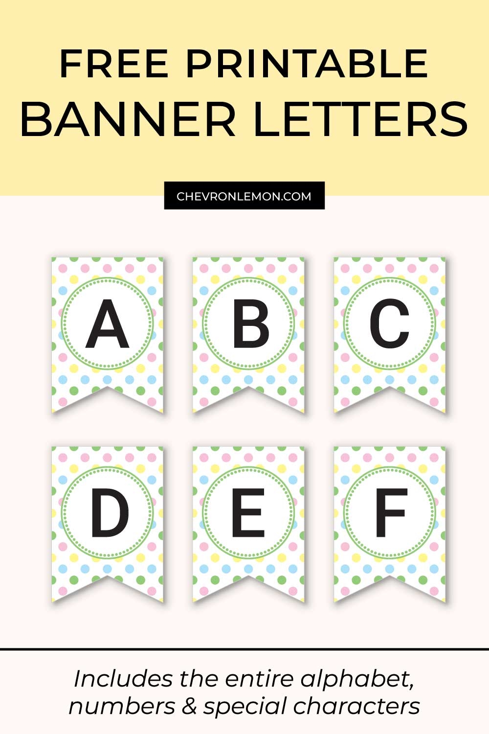Polka Dot Printable Letter Banner Chevron Lemon
