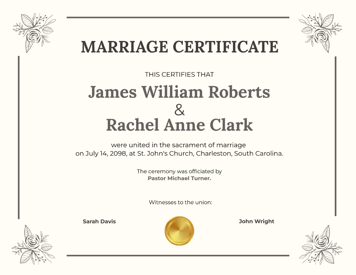 Not only is this certificate a lovely memento of your union, but it also makes a thoughtful gift for your witnesses. They will appreciate the thought and effort you put into creating a personalized keepsake just for them.