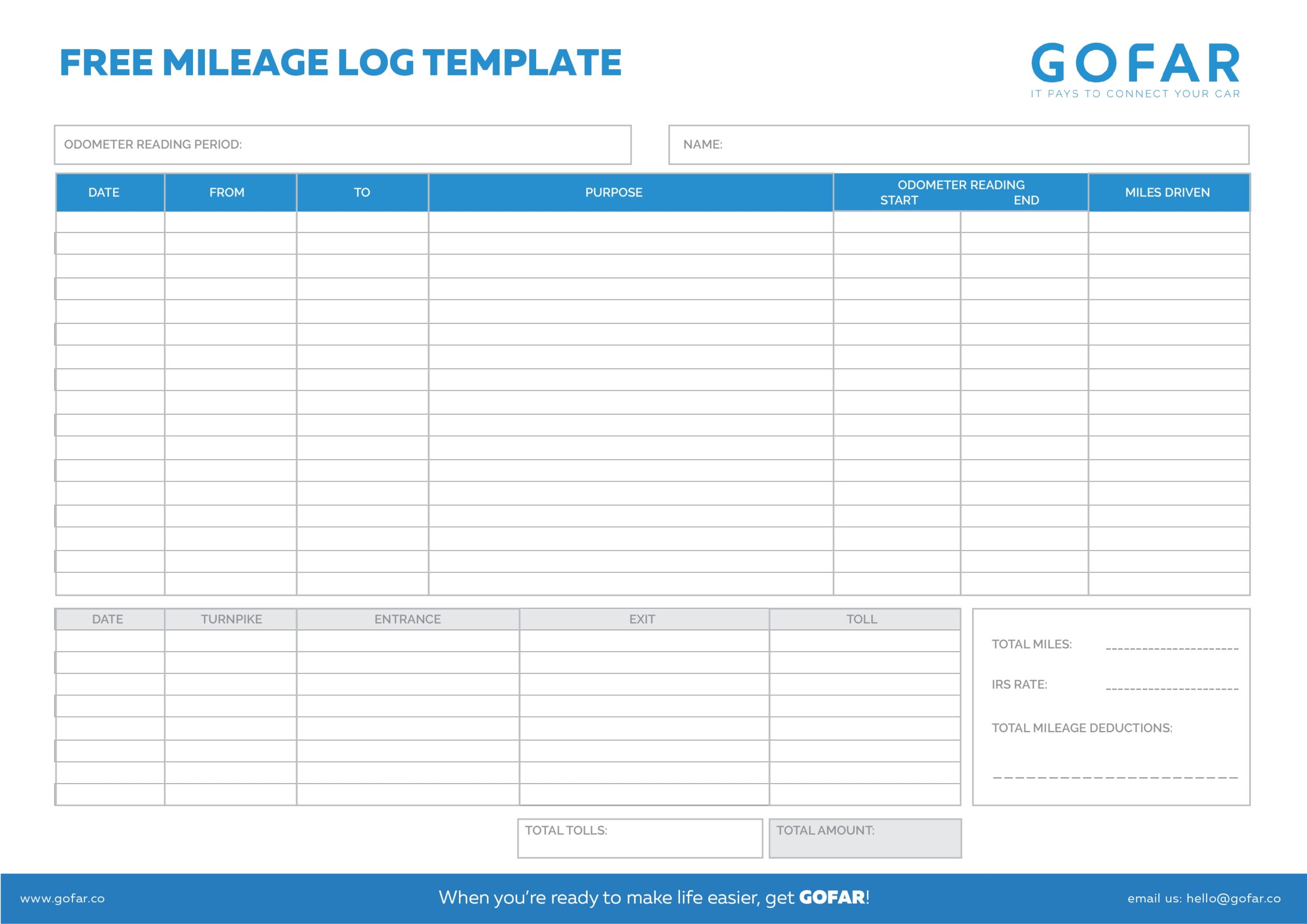 Download Free Printable IRS Mileage Tracking Templates GOFAR
