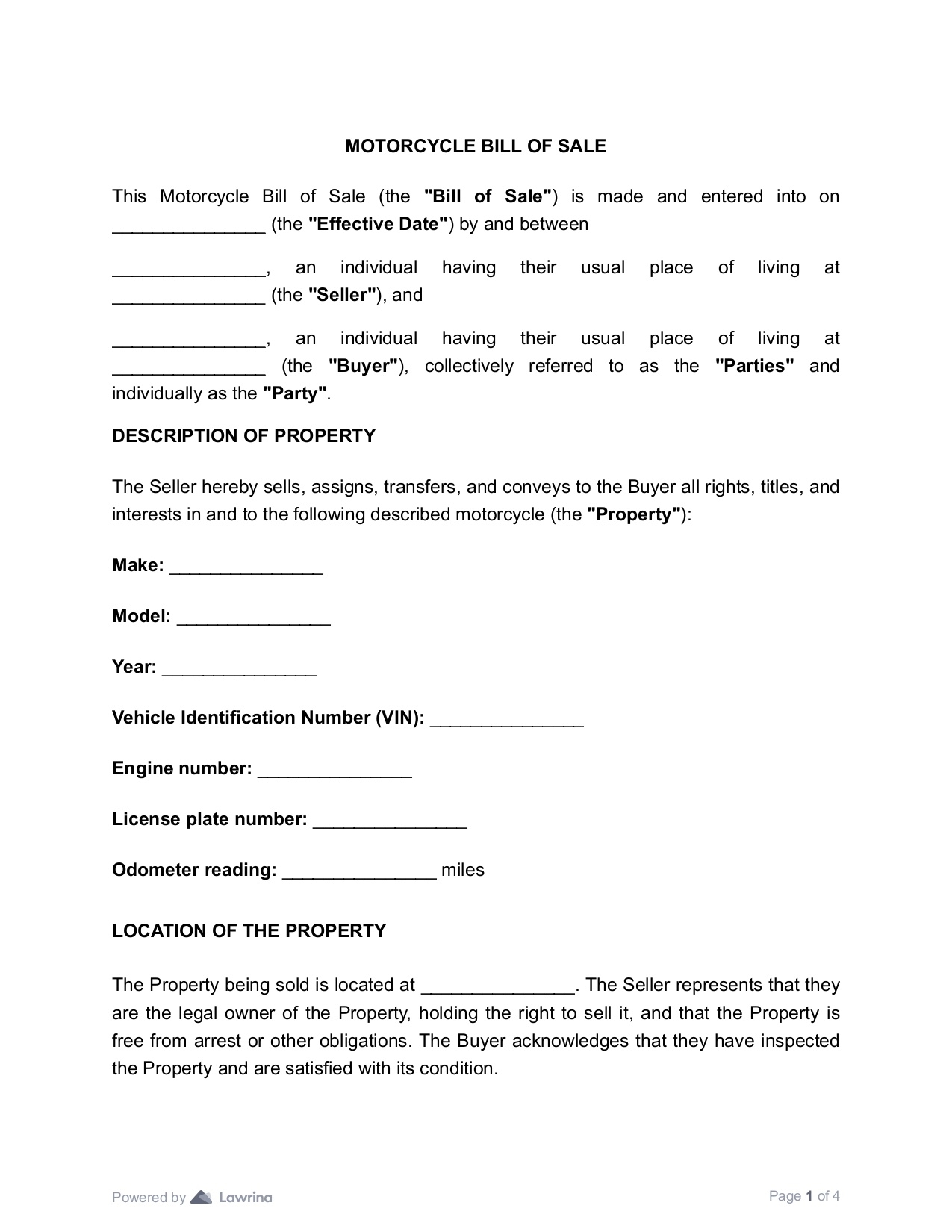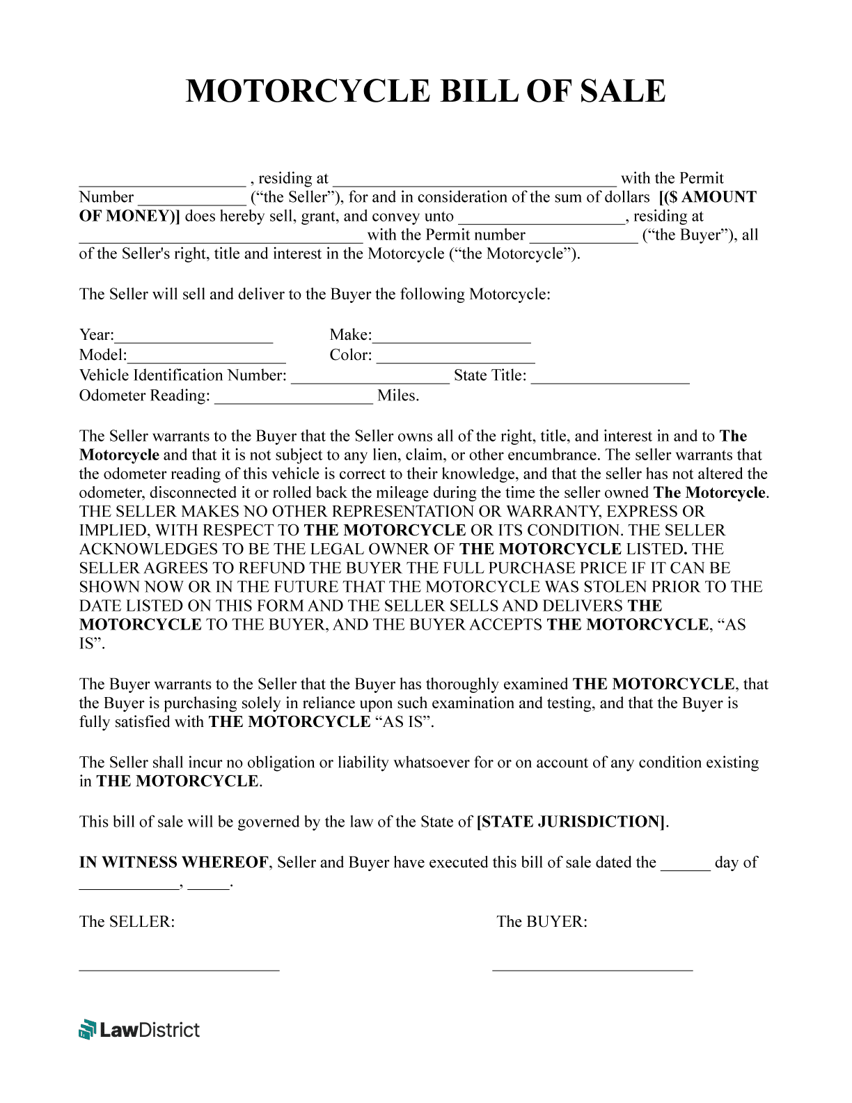 Free Printable Motorcycle Bill Of Sale
