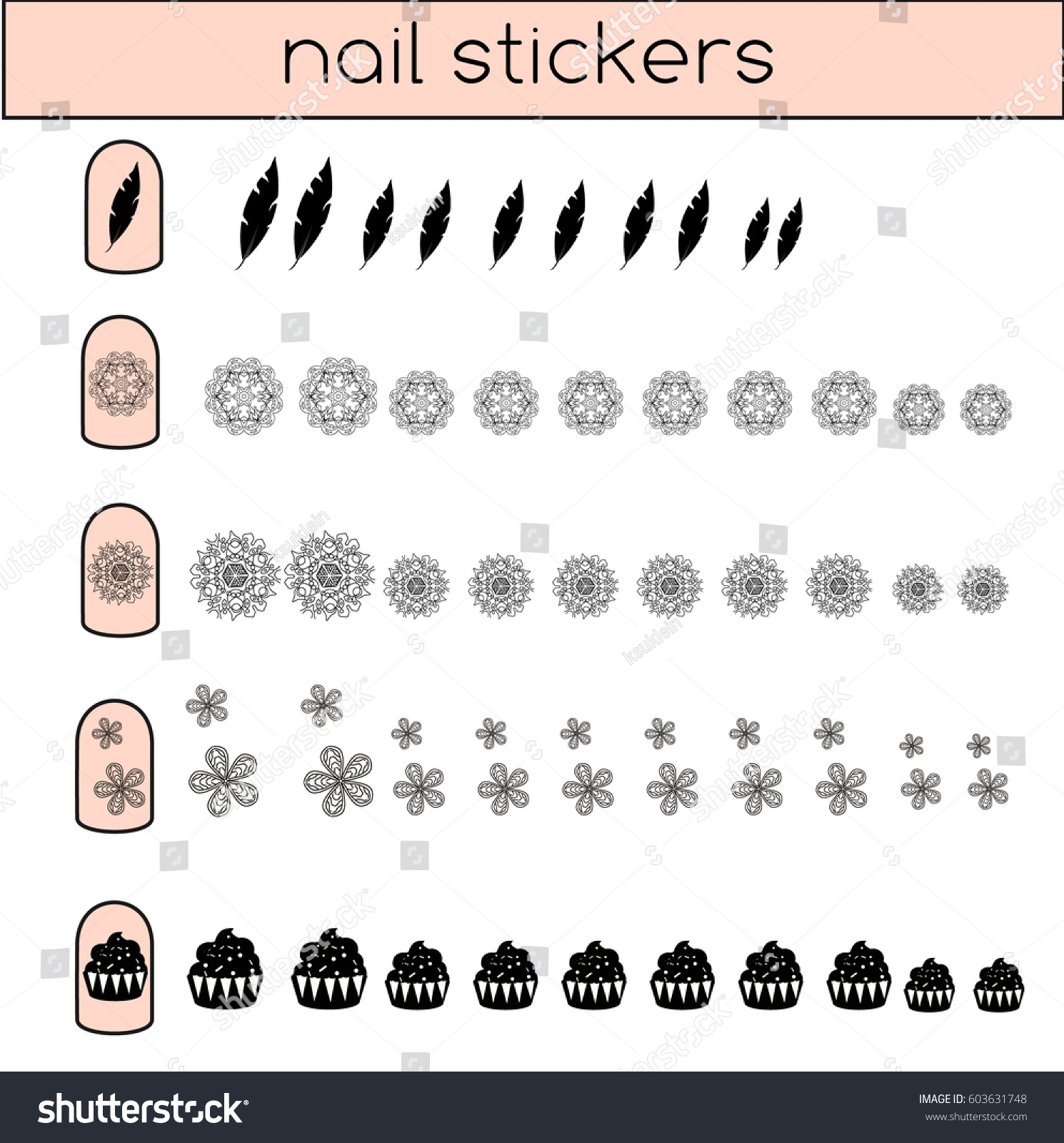 Nail Stickers Set Manicure Nail Art Stock Vector Royalty Free 603631748 Shutterstock