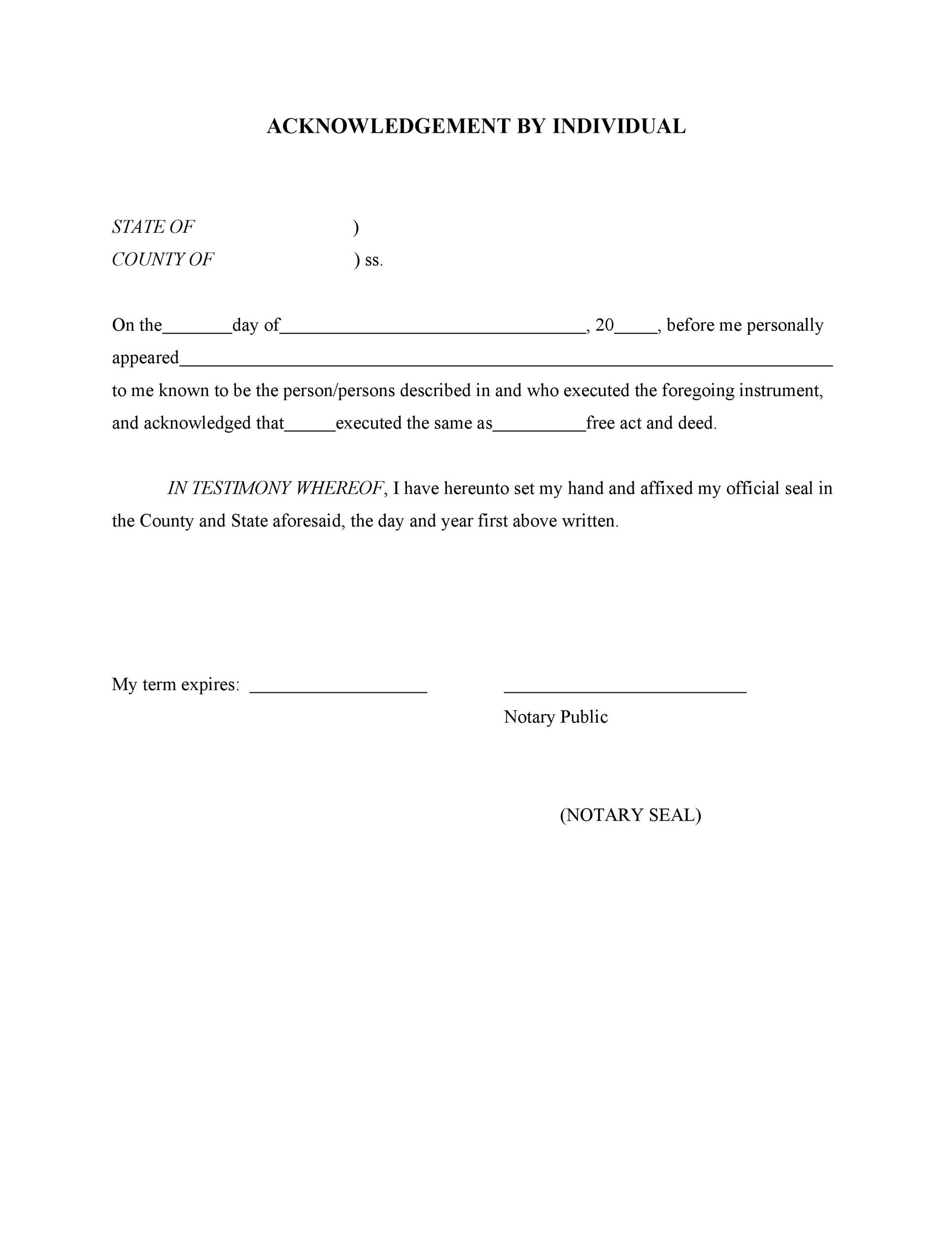 40 Free Notary Acknowledgement U0026 Statement Templates TemplateLab