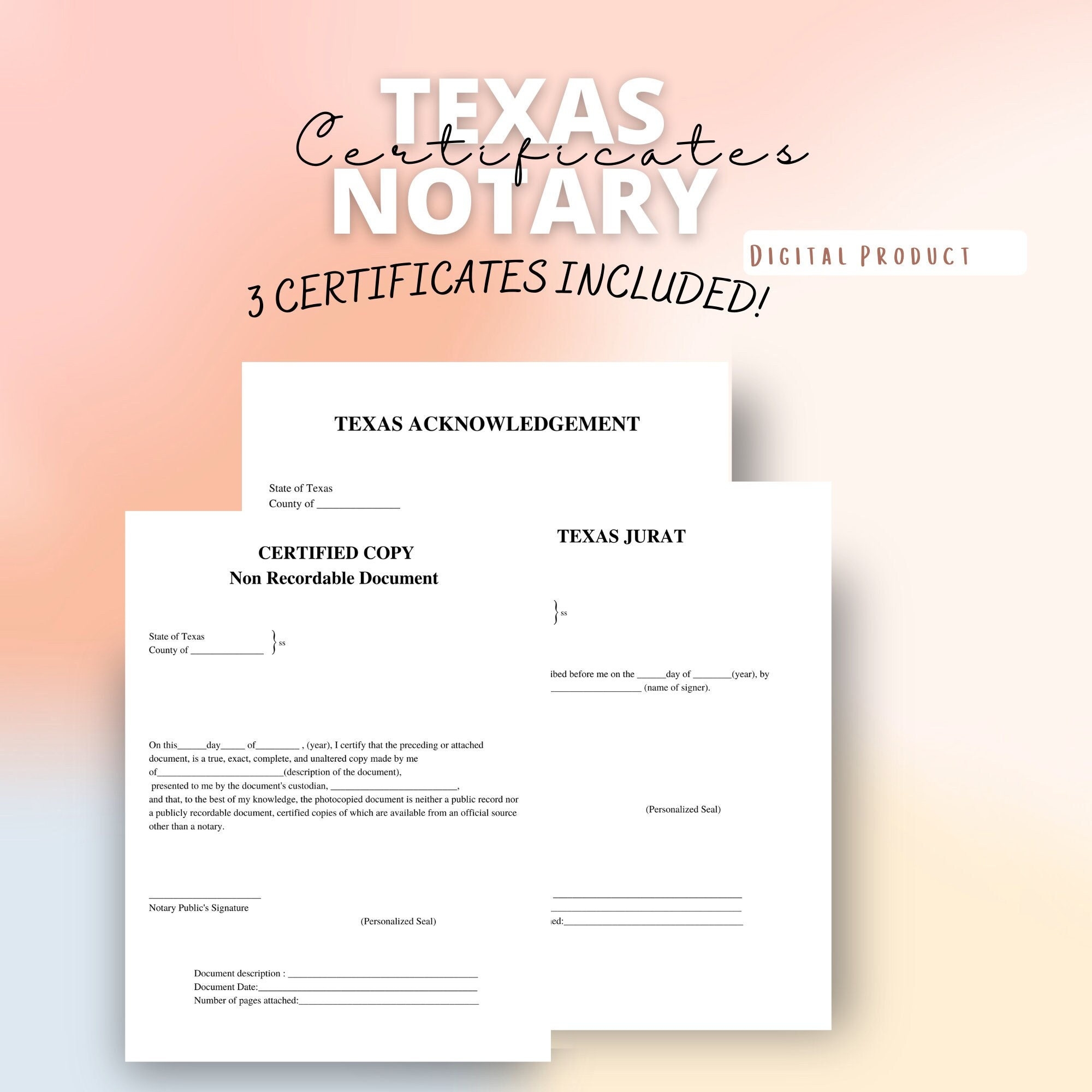 Texas Notary Certificates Notary Public Signing Agent Notary Forms Etsy