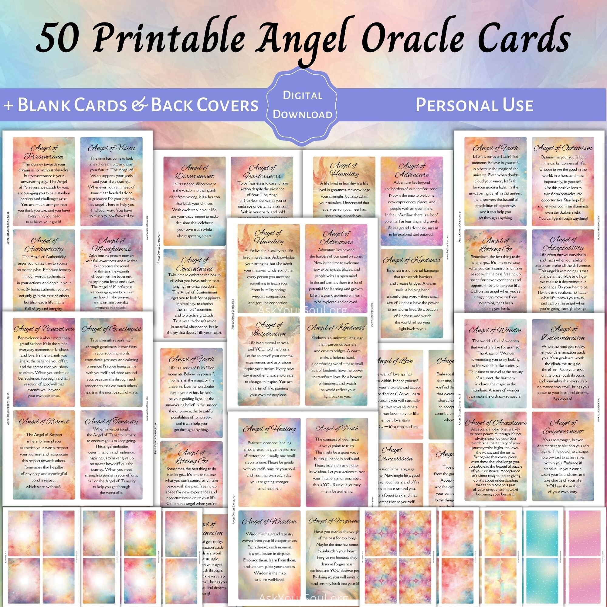 50 PRINTABLE Angel Oracle Cards Personal Use Colorful Spiritual Guidance Messages Supportive Encouraging Cards PDF Blank Oracle Cards Etsy