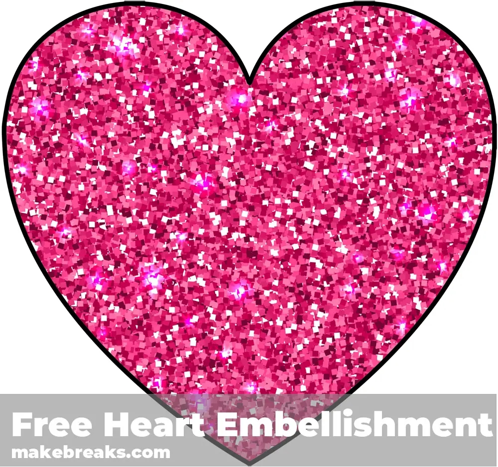 Free Printable Pink Glitter Heart Embellishment Make Breaks