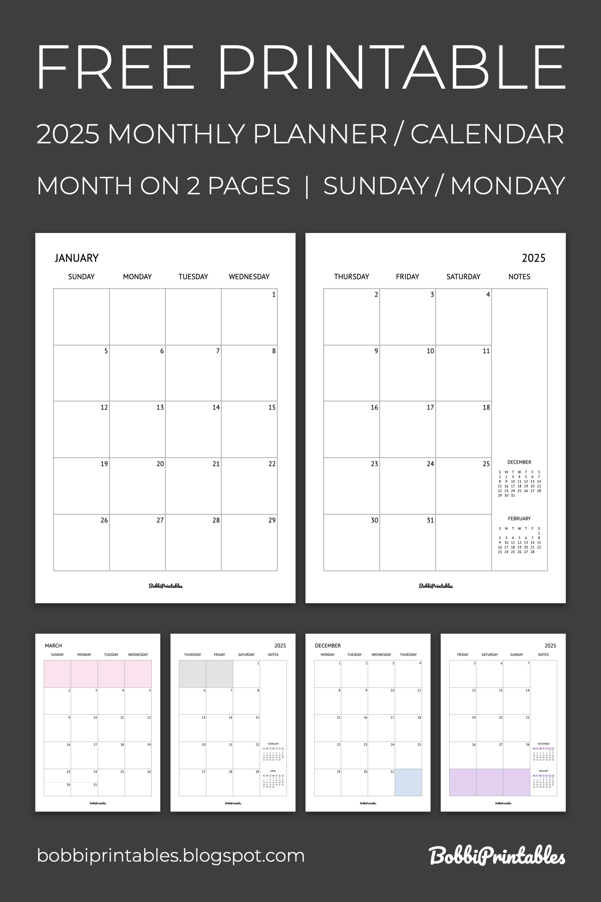 2025 Monthly Planner Calendar Free Printable Month On 2 Pages