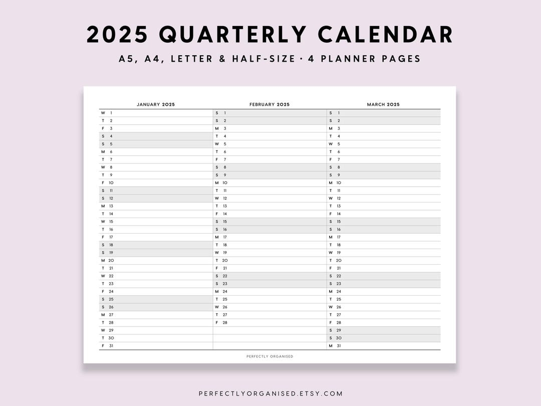 2025 Quarterly Calendar 2025 Foldout Calendar 2025 Folding Calendar 2025 3 Month Calendar Classic A5 Half size A4 Letter PRINTABLE Etsy UK