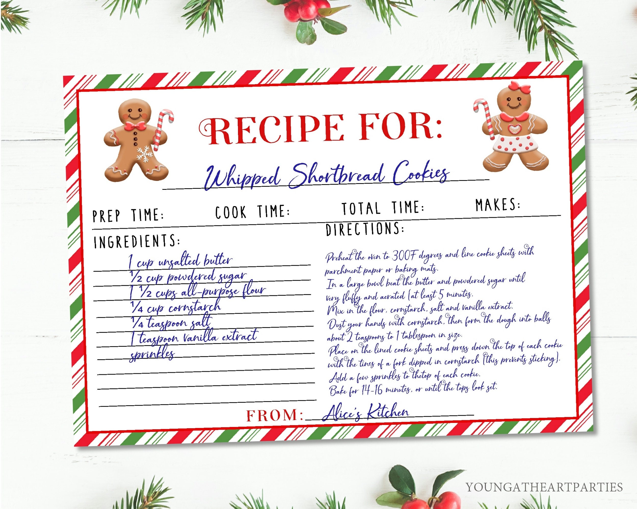 Christmas Recipe Card Printable Holiday Recipe Card Download