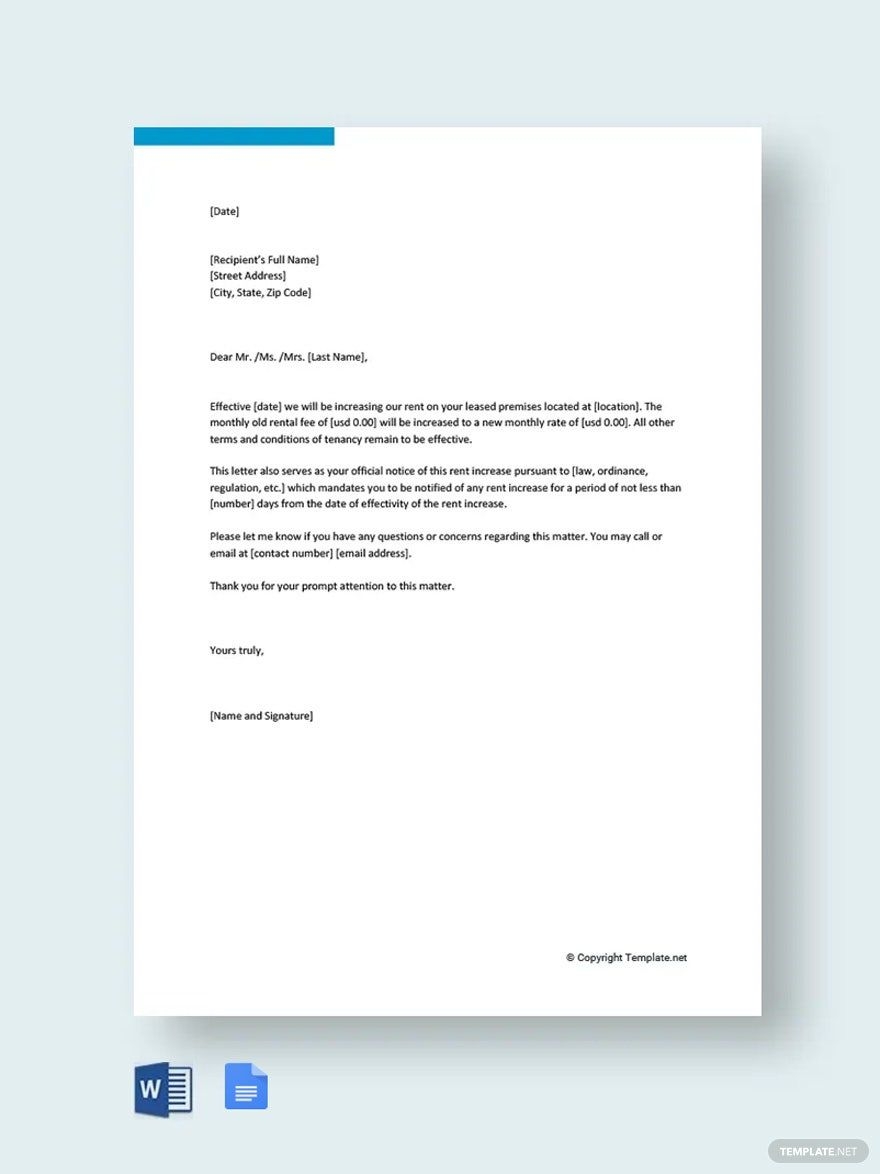 Rent Increase Notice Rent Increase Form Rent Increase Letter Rent Increase Template Printable Editable PDF DOCX Etsy