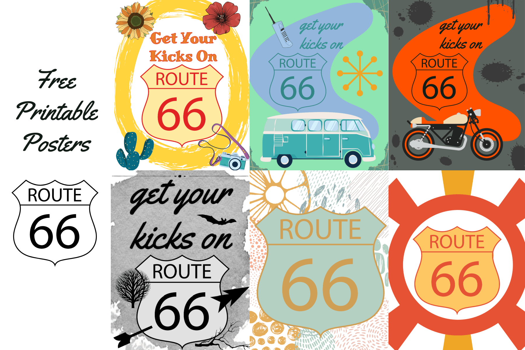 6 FREE Printable Route 66 Travel Wall Art Gallery Prints