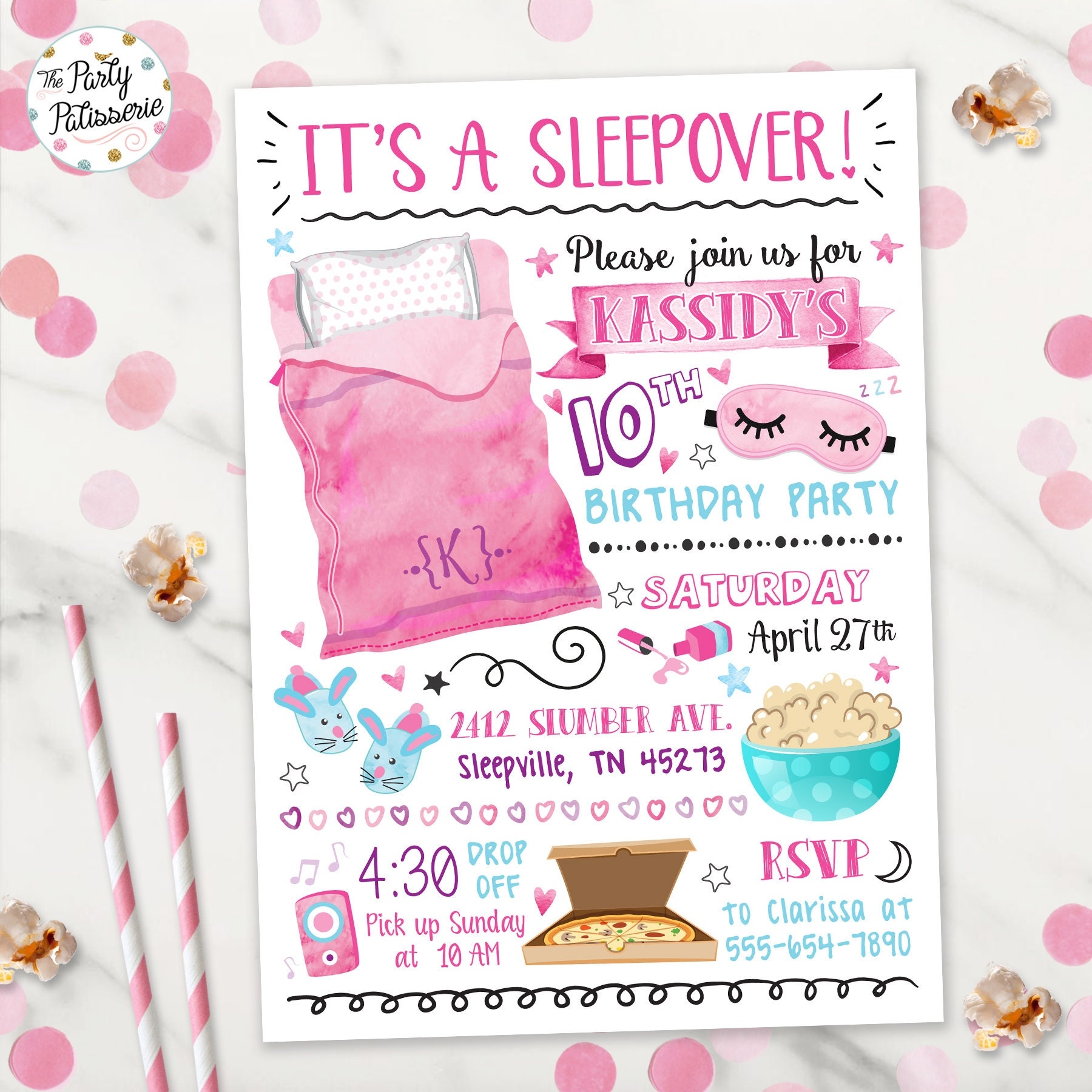 From colorful sleepover scenes to adorable sleep masks, these invitations are sure to get everyone in the mood for a fun-filled night of games, movies, and snacks. Customize the invitations with your own personal touch to make them even more special.