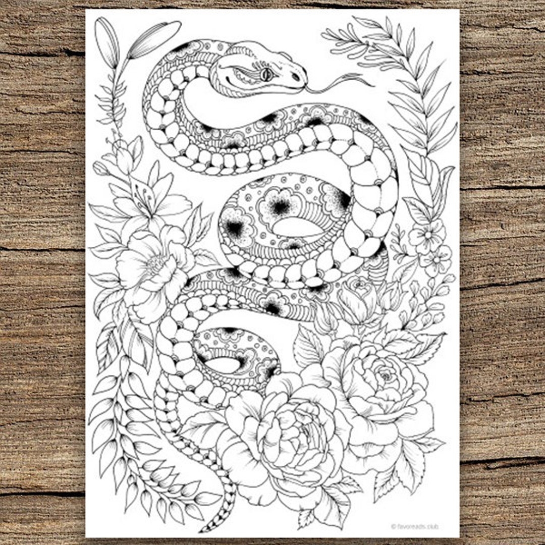 Snake Printable Adult Coloring Page From Favoreads coloring Book Pages For Adults And Kids Coloring Sheets Colouring Designs Etsy Australia