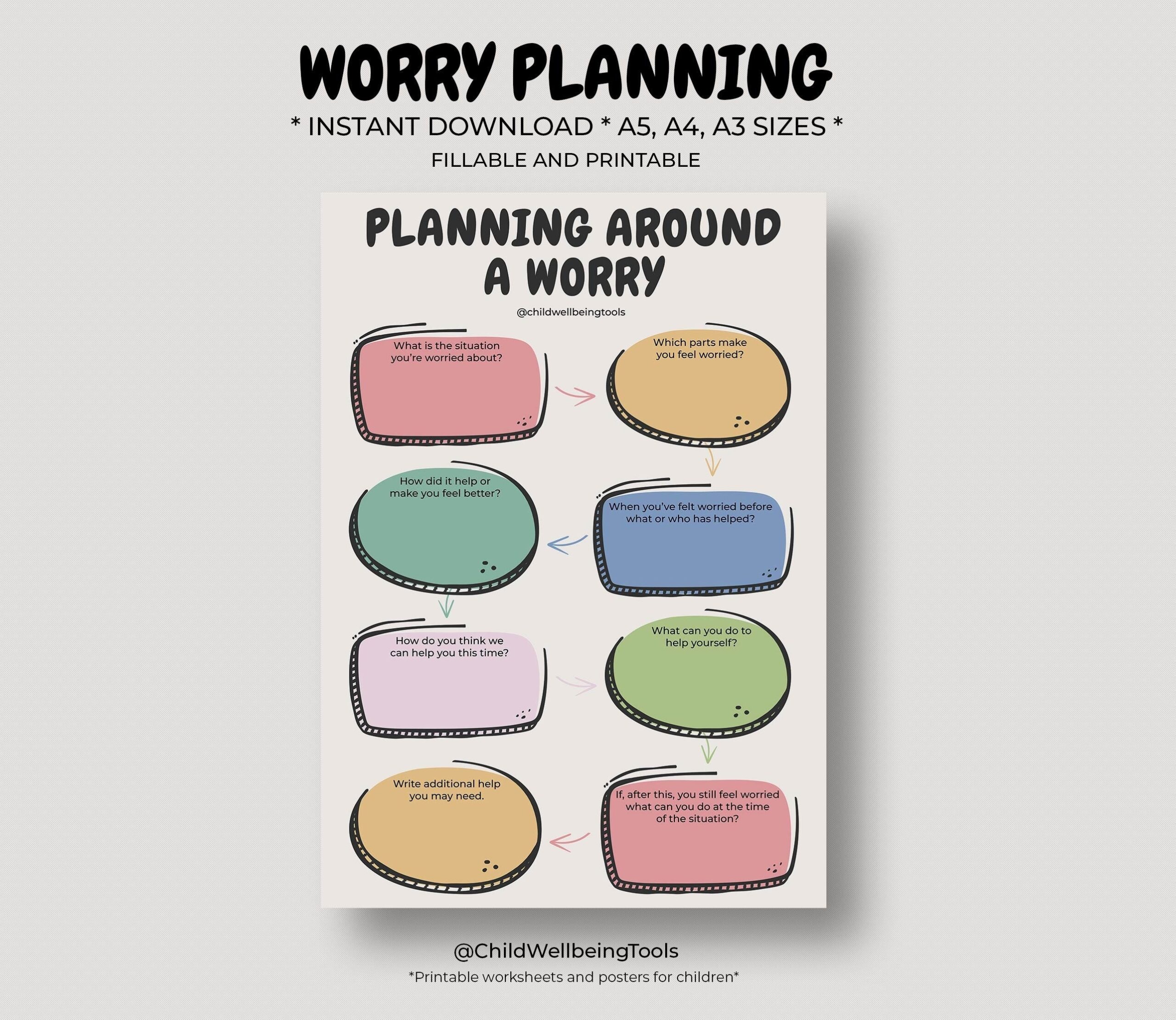 WORRY PLANNING Printable Worksheet For Kids Stress Management