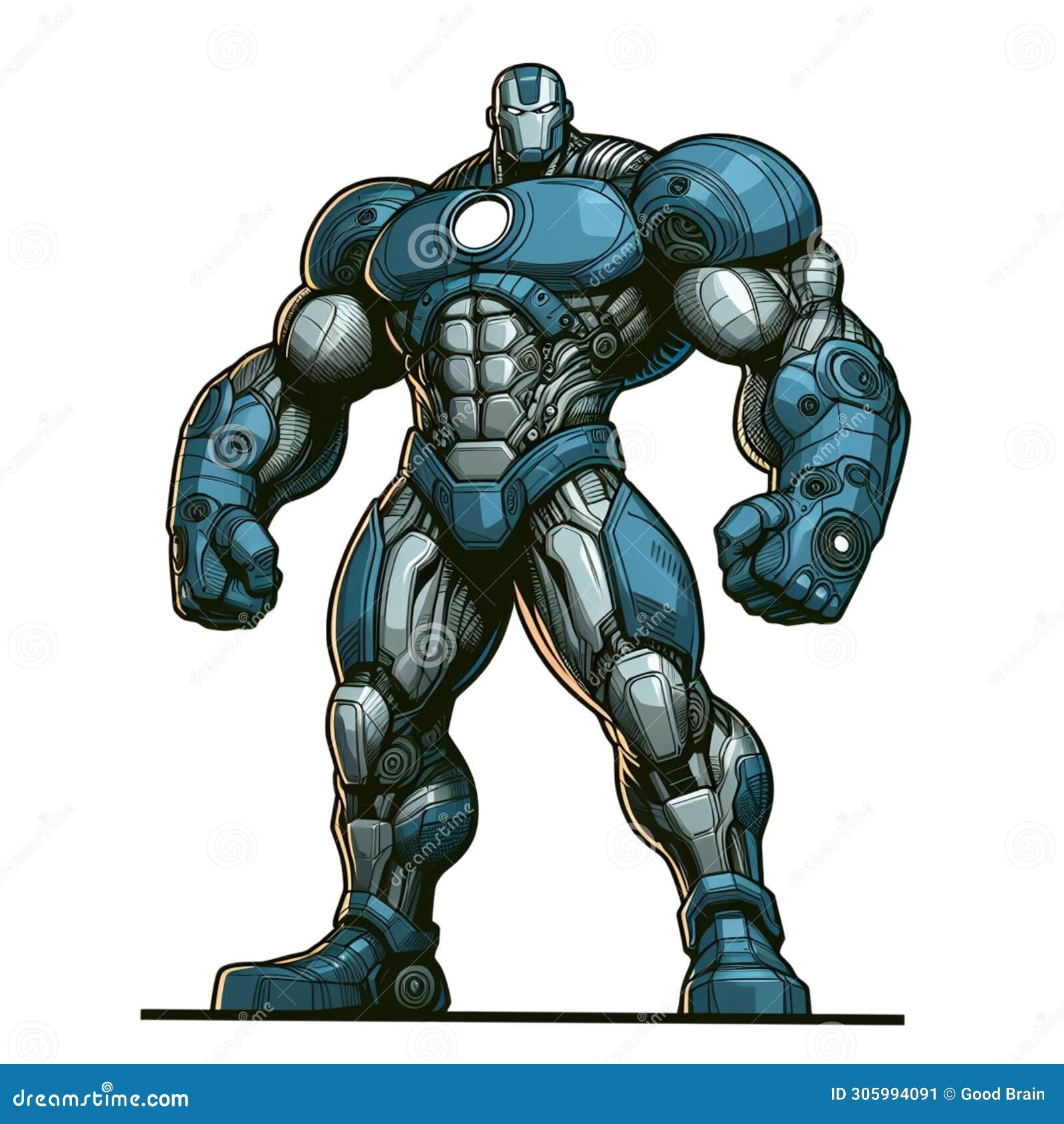 Cartoon Superhero Robot With Horns And A Muscular Body Isolated On A White Background 17 Stock Illustration Illustration Of Face Mechanic 305994091