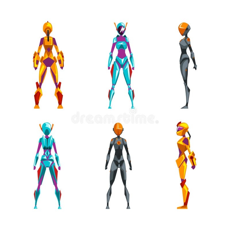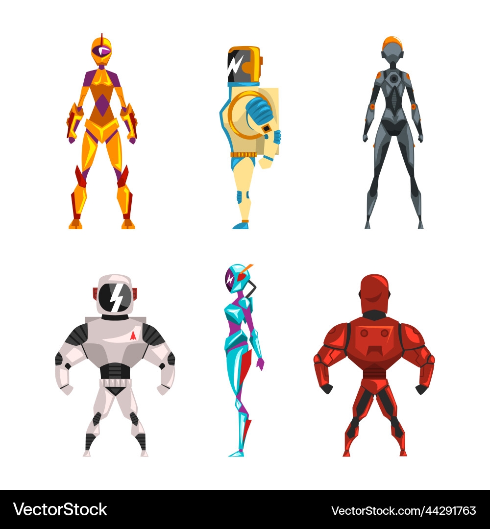 Robot Superhero Figures In Helmet And Armored Vector Image