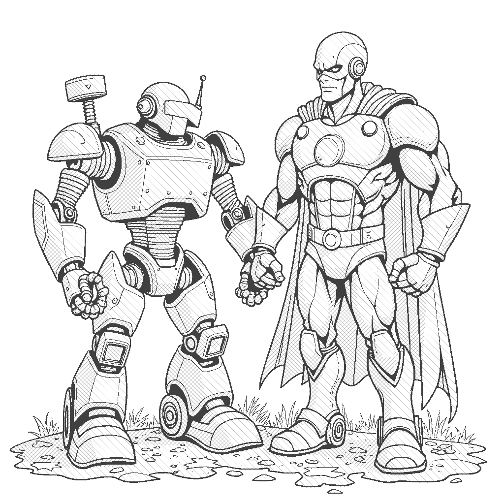 Superhero And The Robot Coloring Page ColorAI me