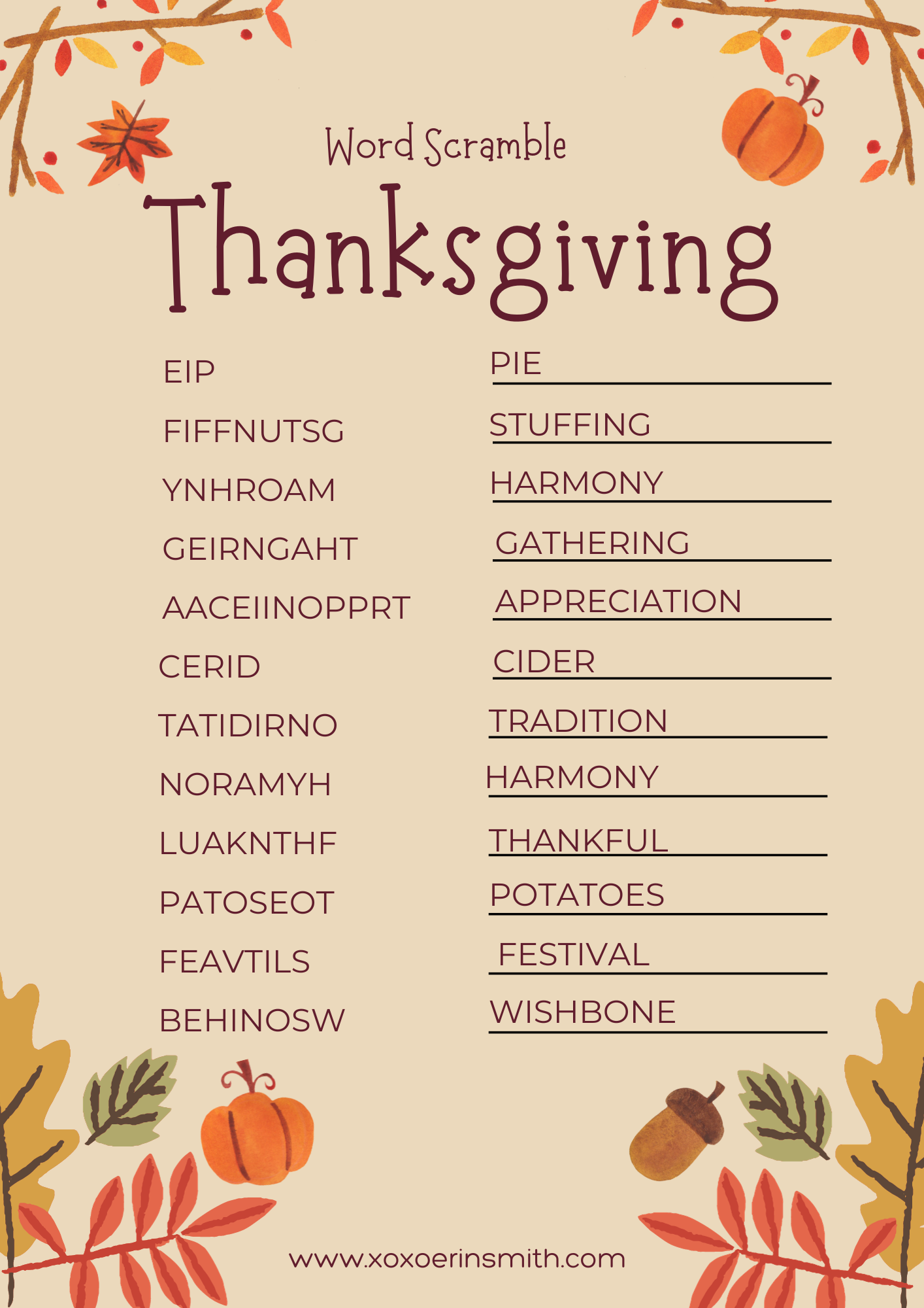 Thanksgiving Word Scramble Fun Free Printable Puzzle Xoxoerinsmith