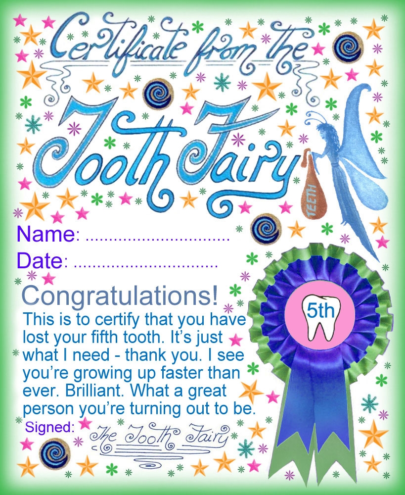 Tooth Fairy Certificate Award For Losing Your Fifth Tooth Rooftop Post Printables