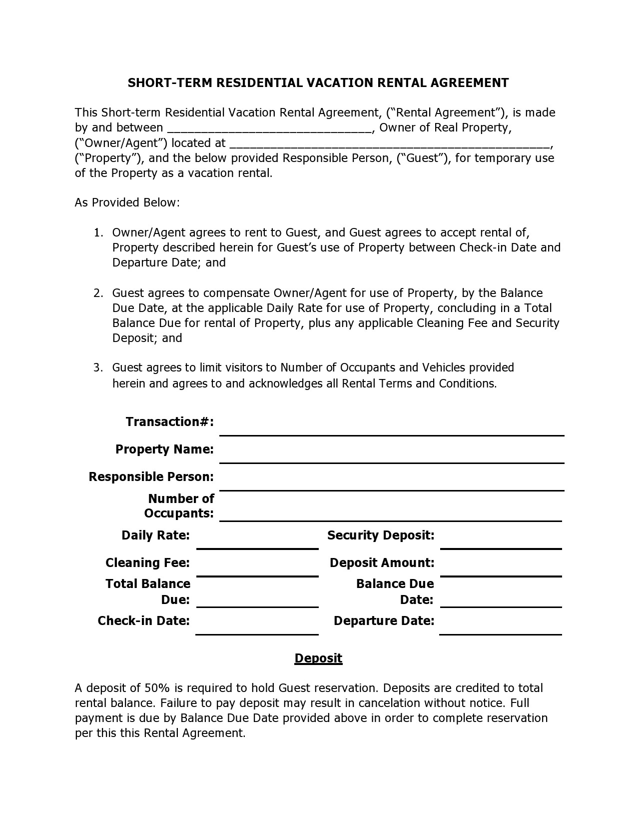 80 Short Term U0026 Vacation Rental Agreement Templates Word PDF