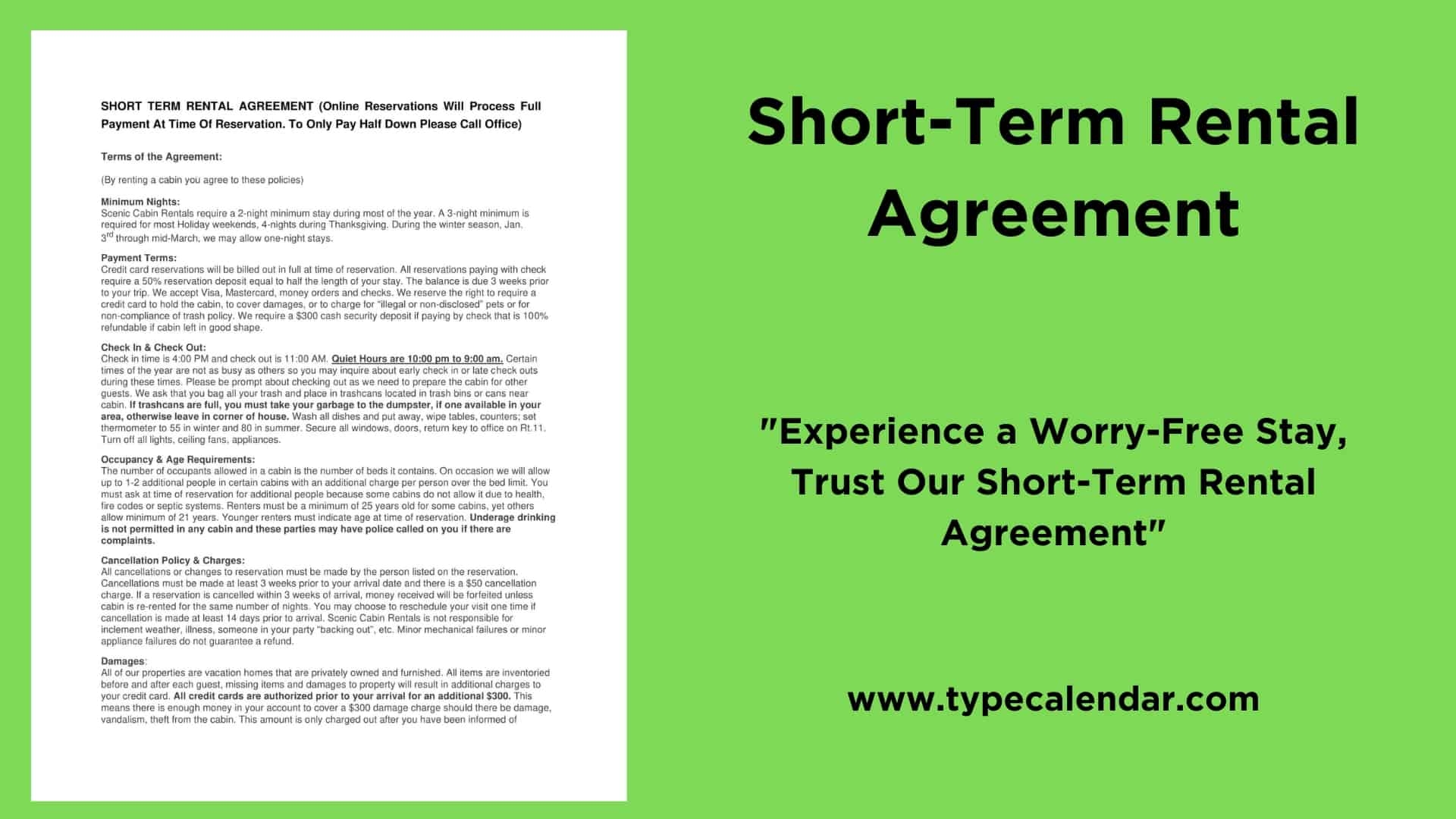 Free Short Term Vacation Lease Agreement Template PDF Word