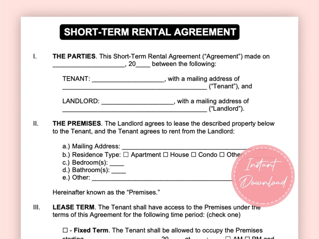 Vacation Rental Agreement Short Term Rental Agreement Short Term Rental Template Short Term Rental Editable Instant Download A4 Etsy