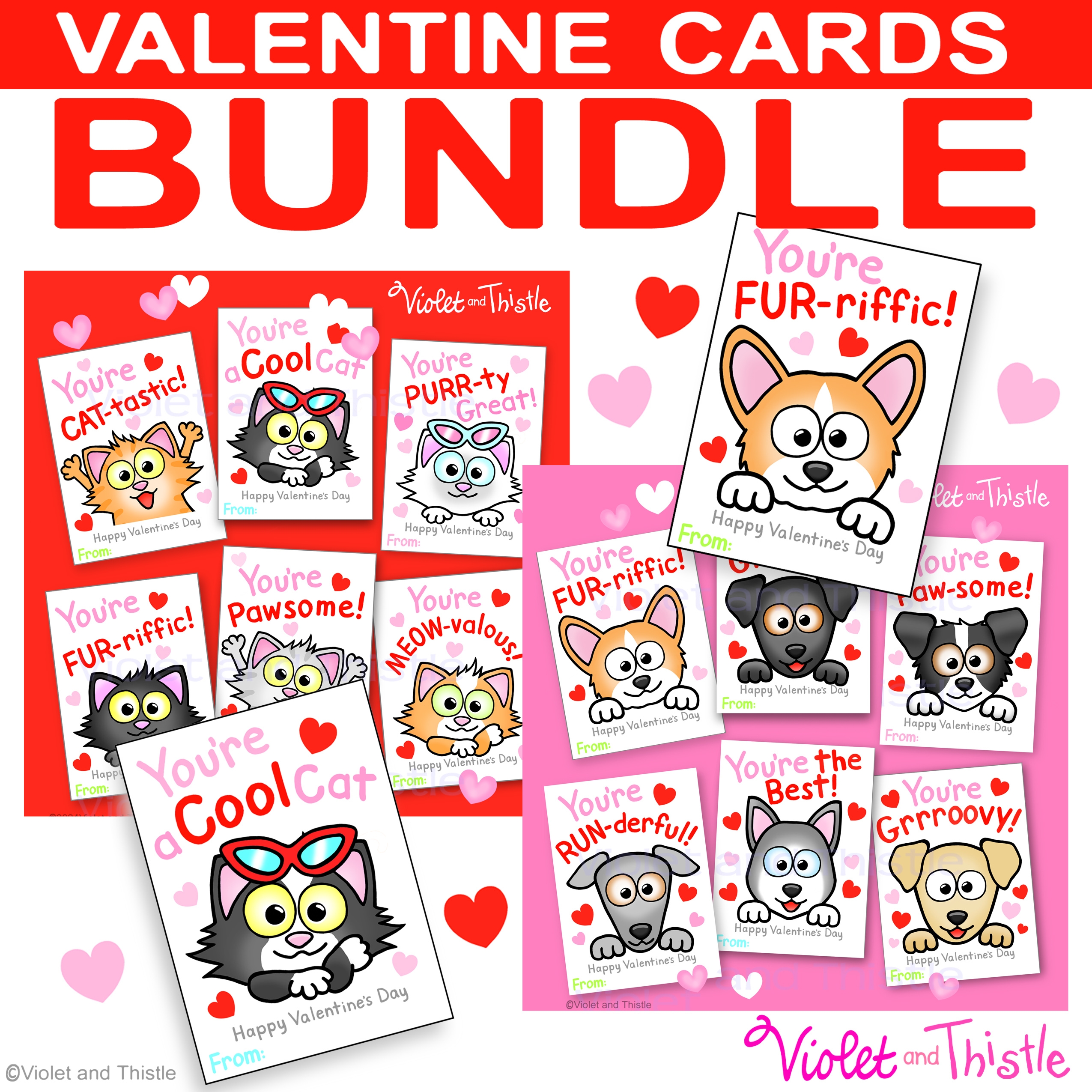 Valentine Day Cards Printable BUNDLE Teacher To Student Kids To