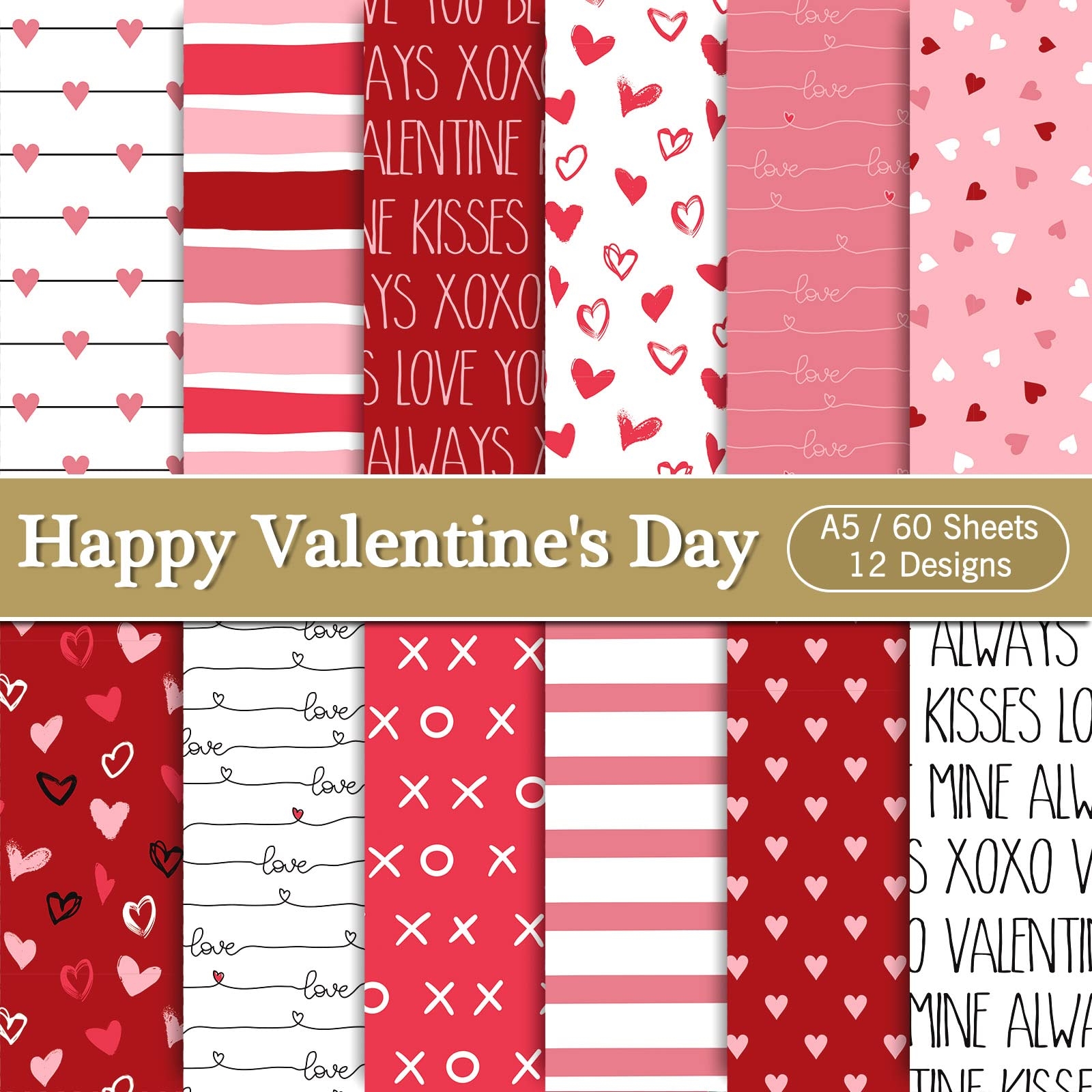 Amazon Whaline 60 Sheet Valentine s Day Pattern Paper Red