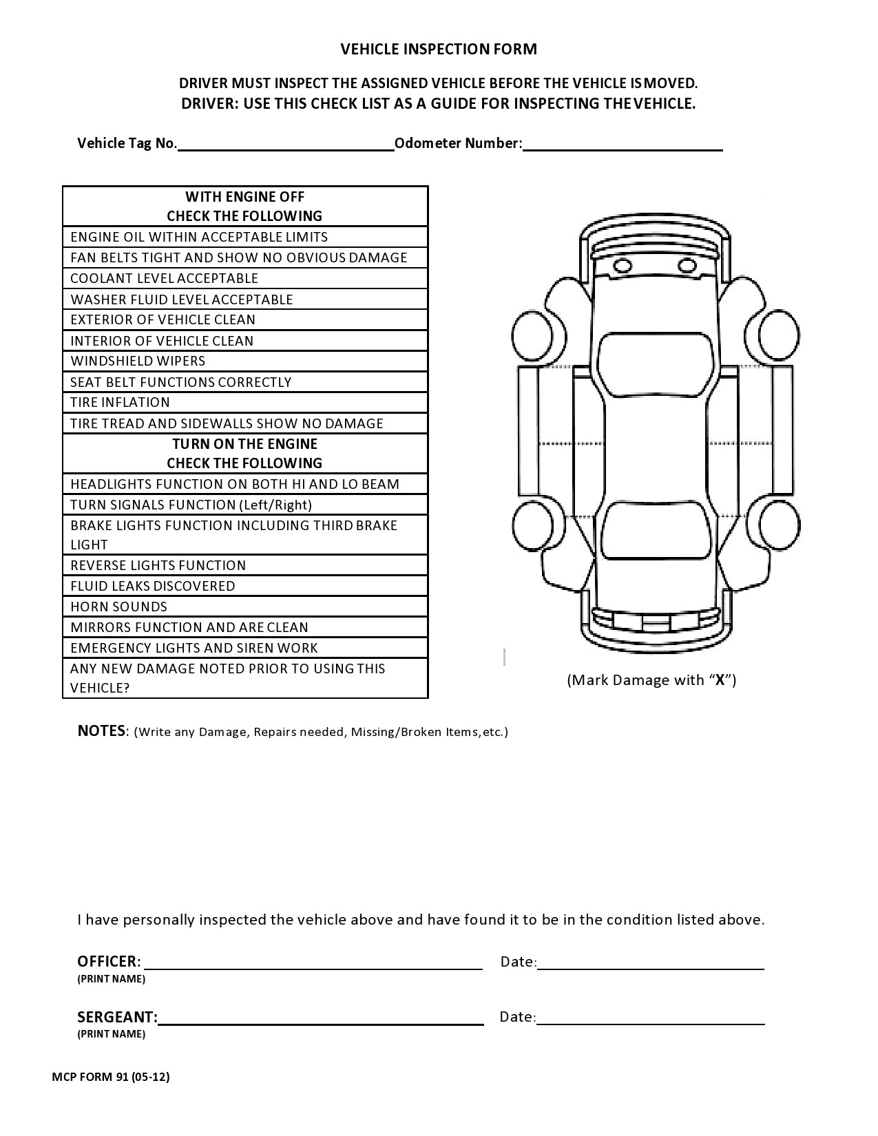 Free Printable Vehicle Inspection Form