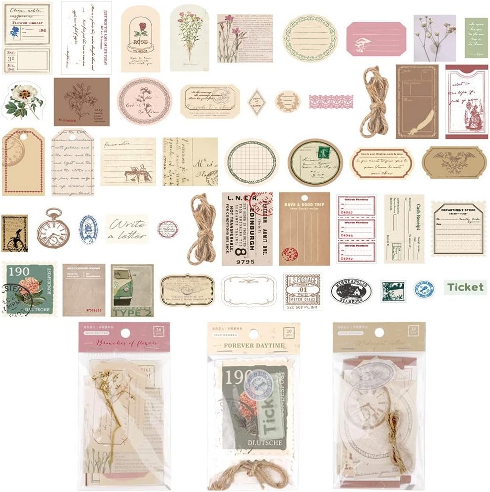 90 Pieces Vintage Scrapbook Stamp Stickers For Art Journaling DIY Crafts Bullet Journals