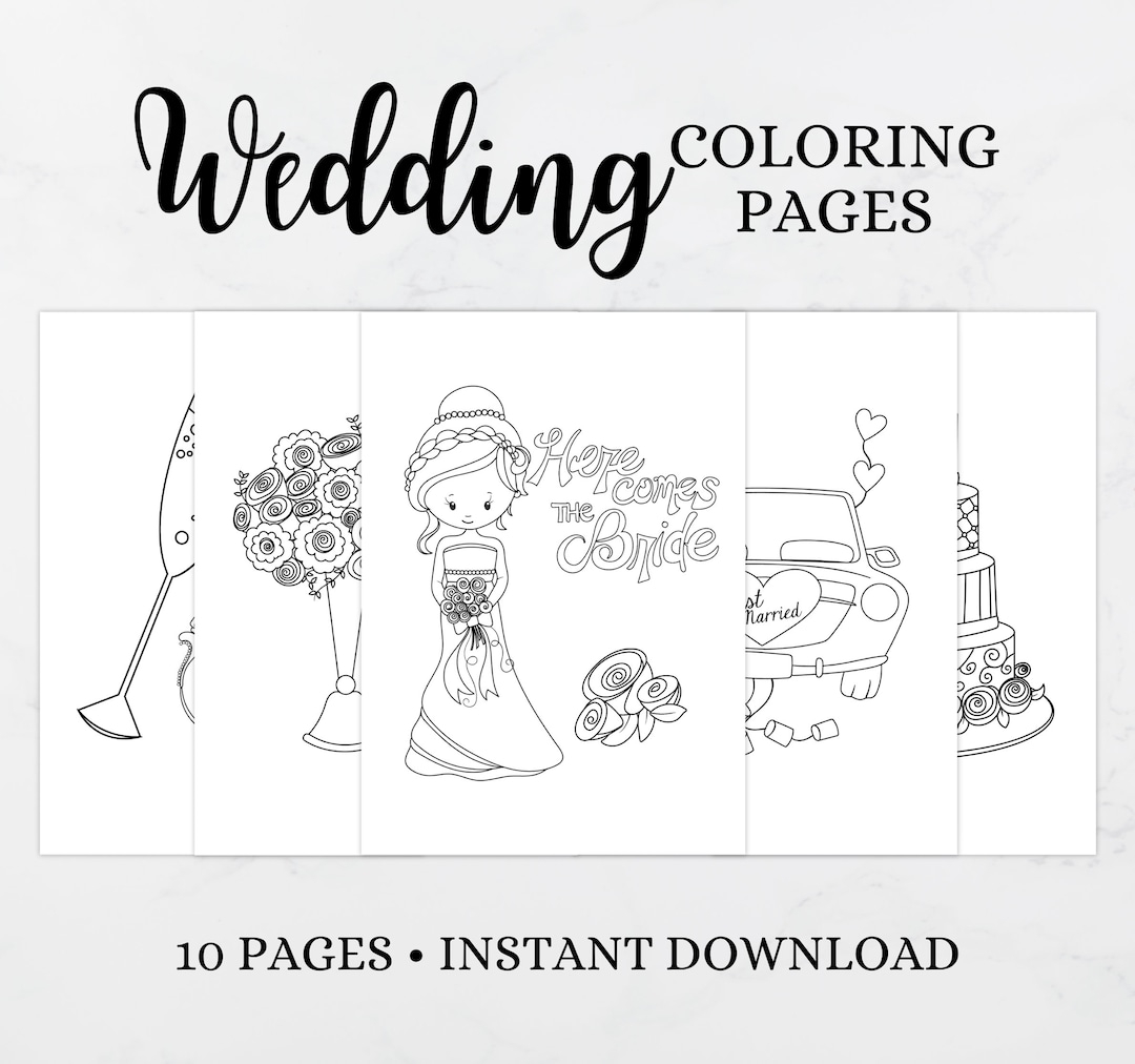 From cute wedding cakes to adorable flower girls, these coloring pages are sure to delight children of all ages. Simply download and print them out for an easy and budget-friendly entertainment option for your big day.