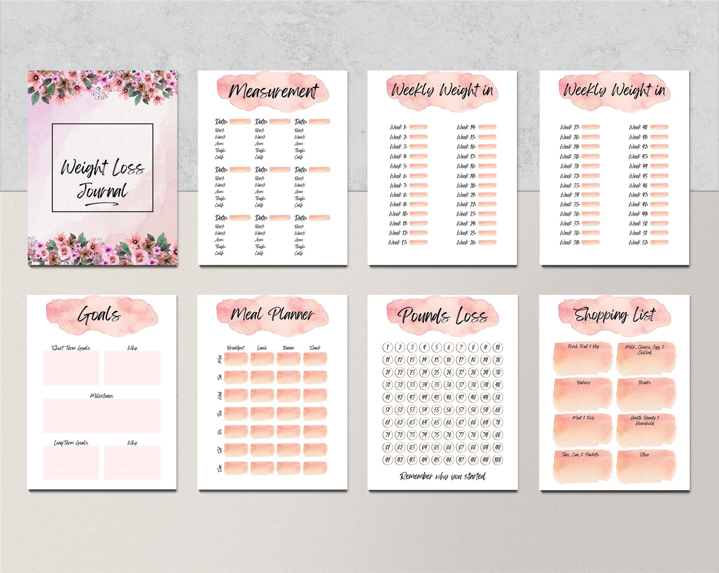 EDITABLE Daily Weight Loss Tracker Printable Weight Loss Journal Fitness Progress Weight Loss Chart Slimming Planner INSTANT DOWNLOAD Etsy