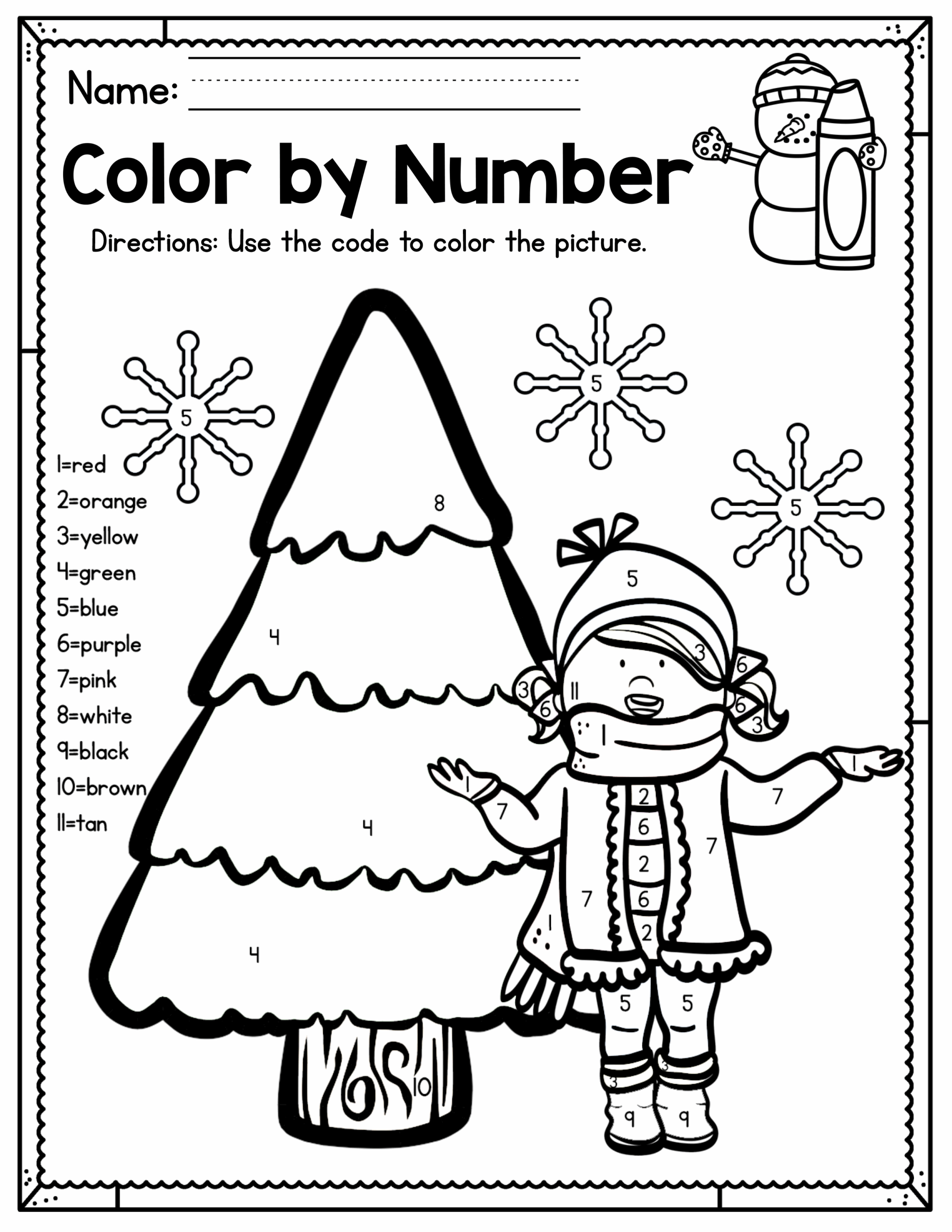 Color By Number Winter Worksheets The Artisan Life