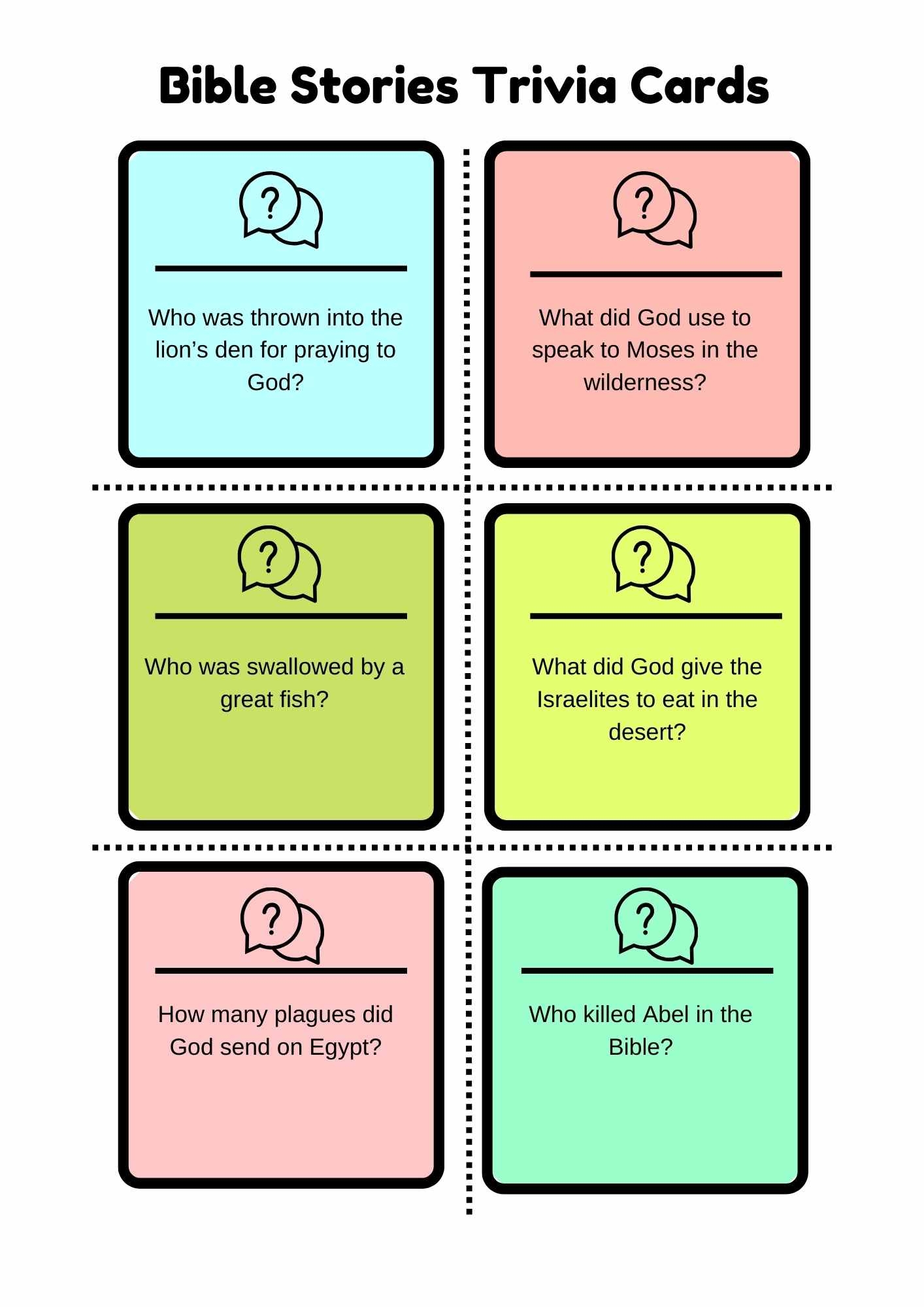 Bible Trivia Story Themed Printable Cards Fun And Engaging Bible