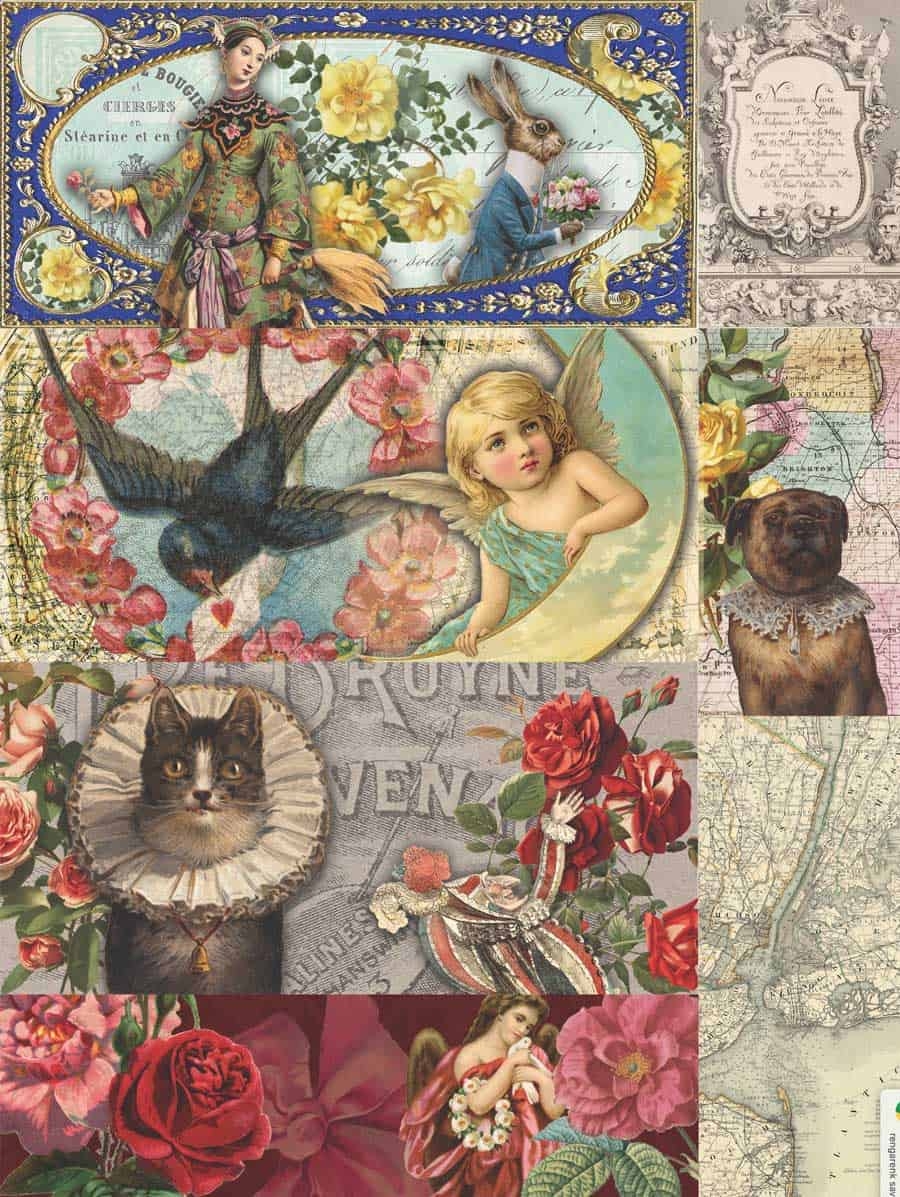 7 Free Creative Collage Sheet Printables For Decoupage Tissue Paper Artsy Fartsy Life