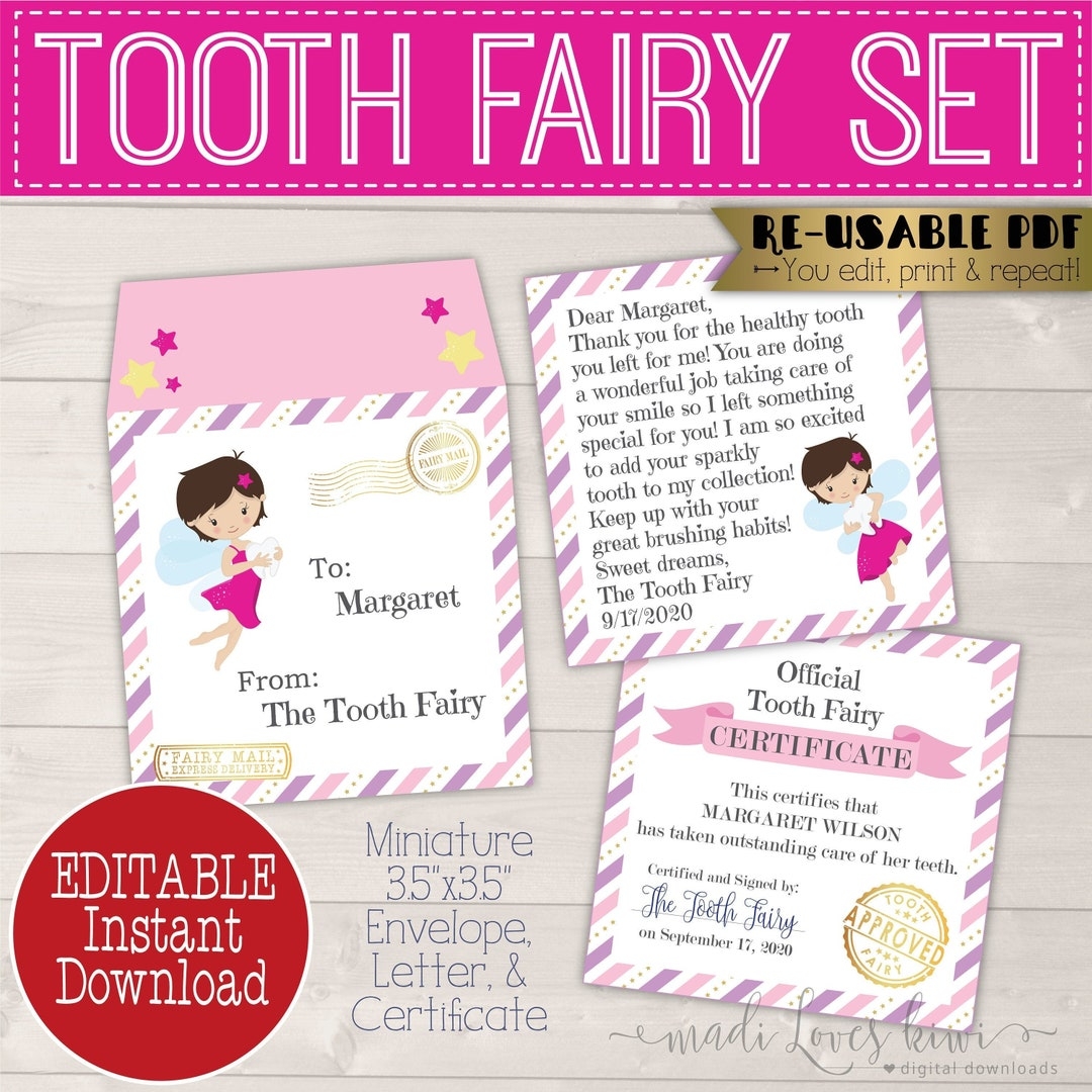 Mini Tooth Fairy Letter Printable With Envelope Editable Lost Tooth Certificate PDF Template Girl Mail Idea Receipt Download First Report Etsy