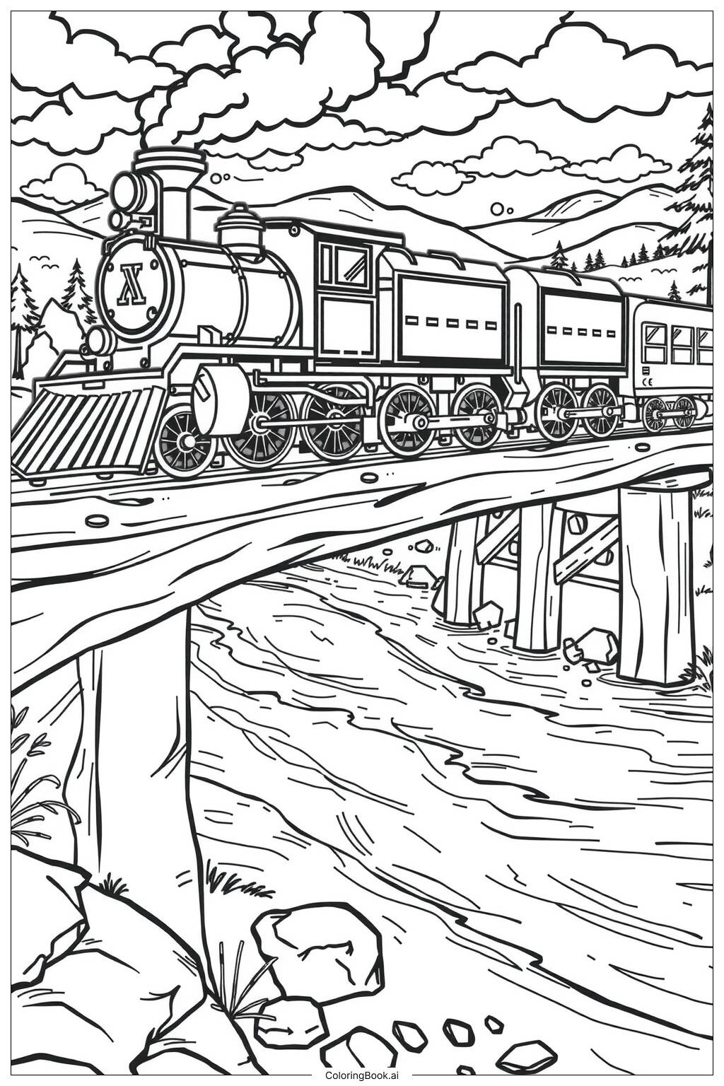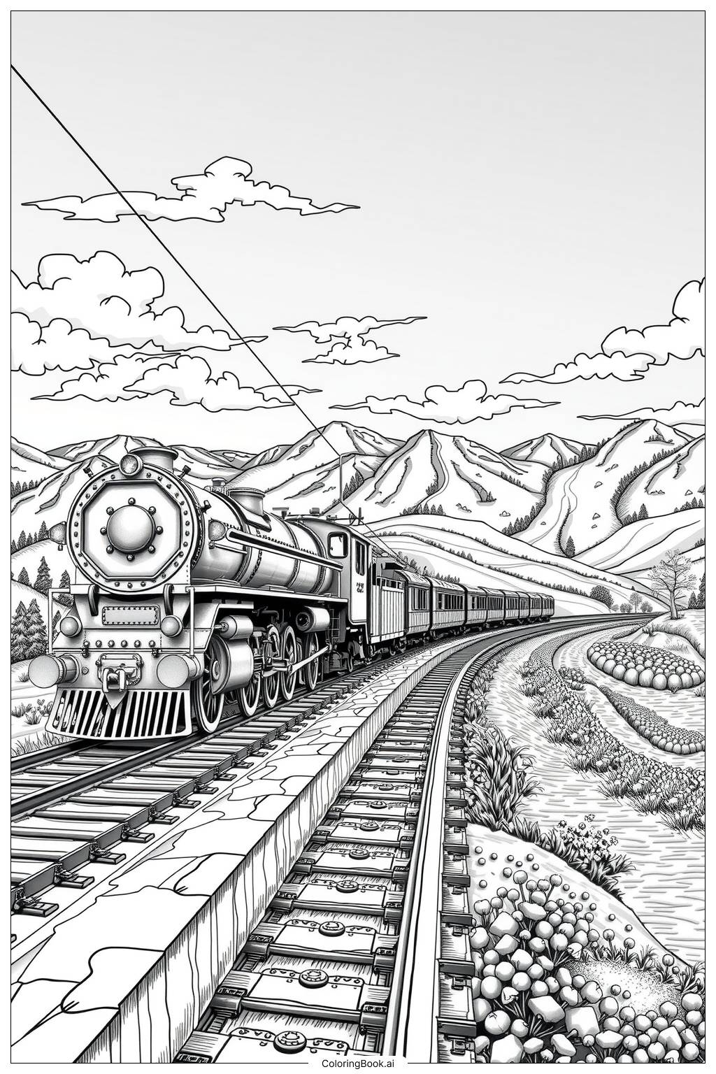Realistic Steam Train In A Mountain Landscape 2 Coloring Page Free PDFu0026PNG Printable